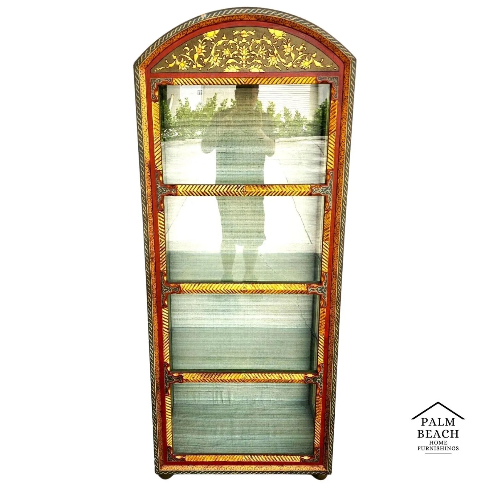 Vintage French Display Curio Cabinet with Giltwood Gold Leaf and Hand-Painted accents.