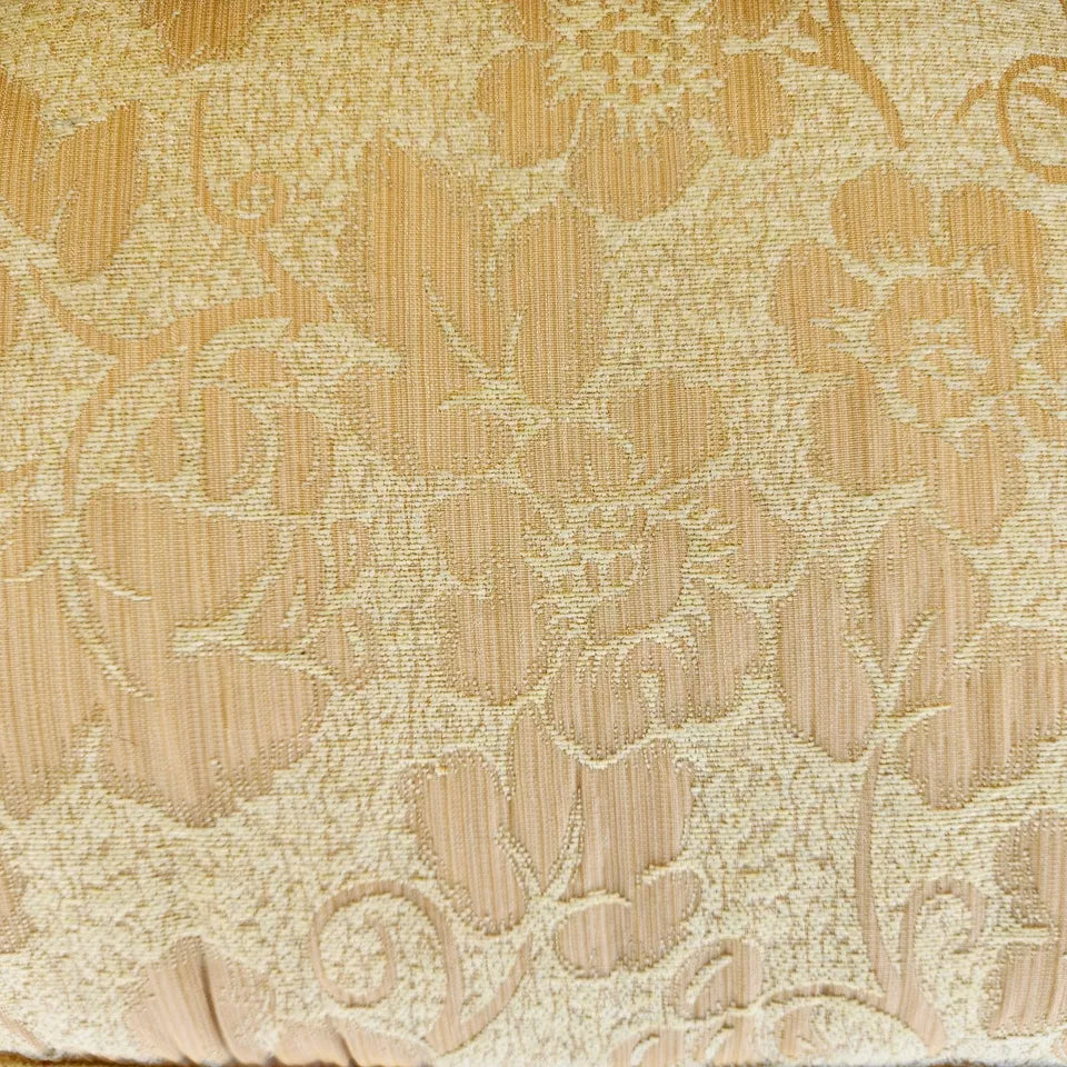 Damask fabric is Satin Cotton so it looks different depending on the lighting and angle you are looking at it. Cushion is medium firm.