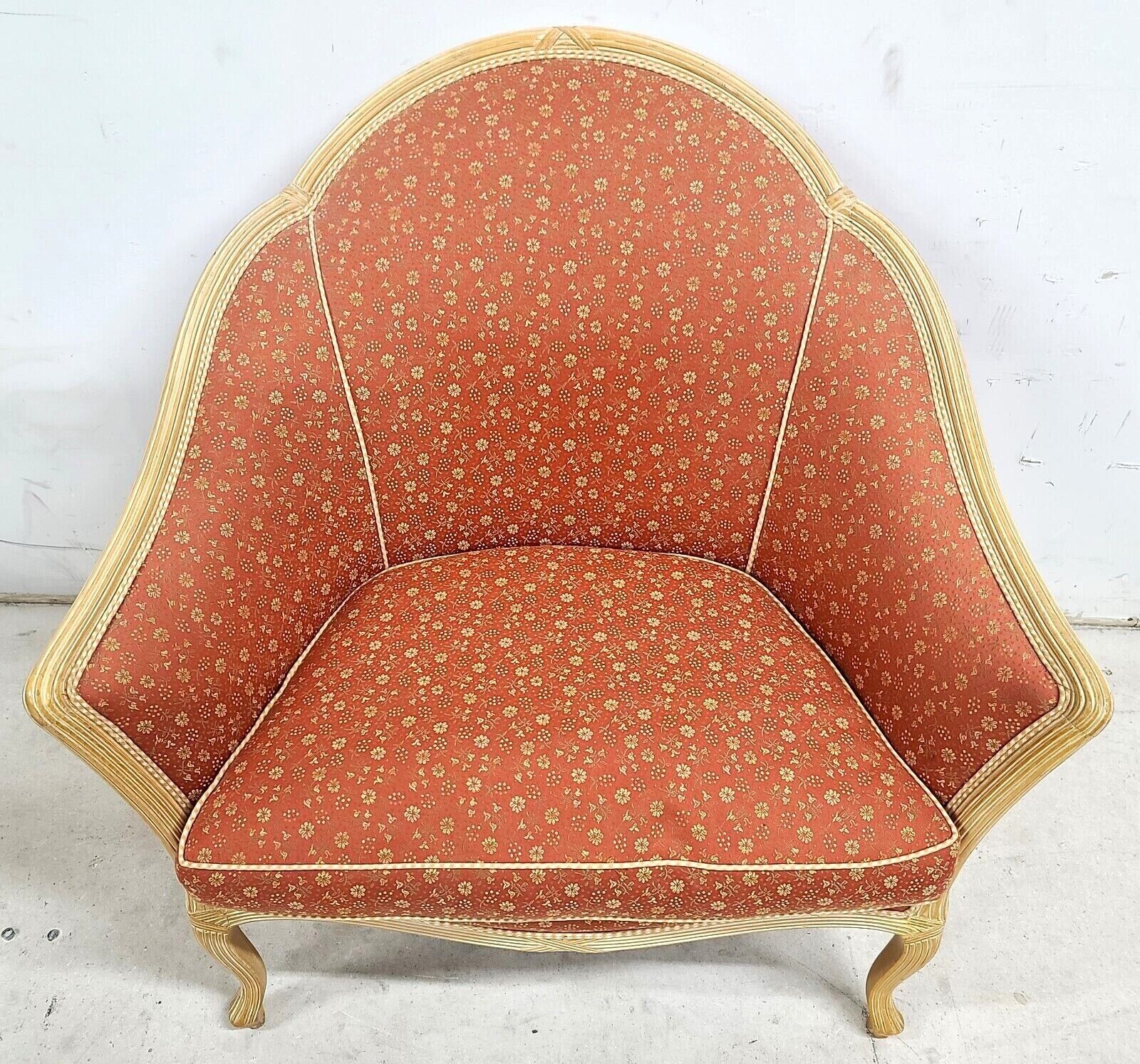 Custom Designer French Provincial Louis XV Style Floral Apricot Settee Chair