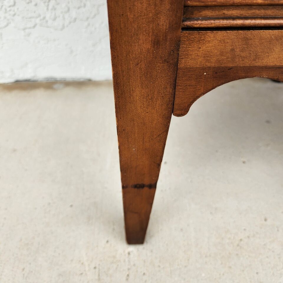 In good, structurally sound, and sturdy condition with no notable damage EXCEPT on the tops which should probably be refinished. The photos are an important part of the item description and condition so please use the zoom feature to view them closely.