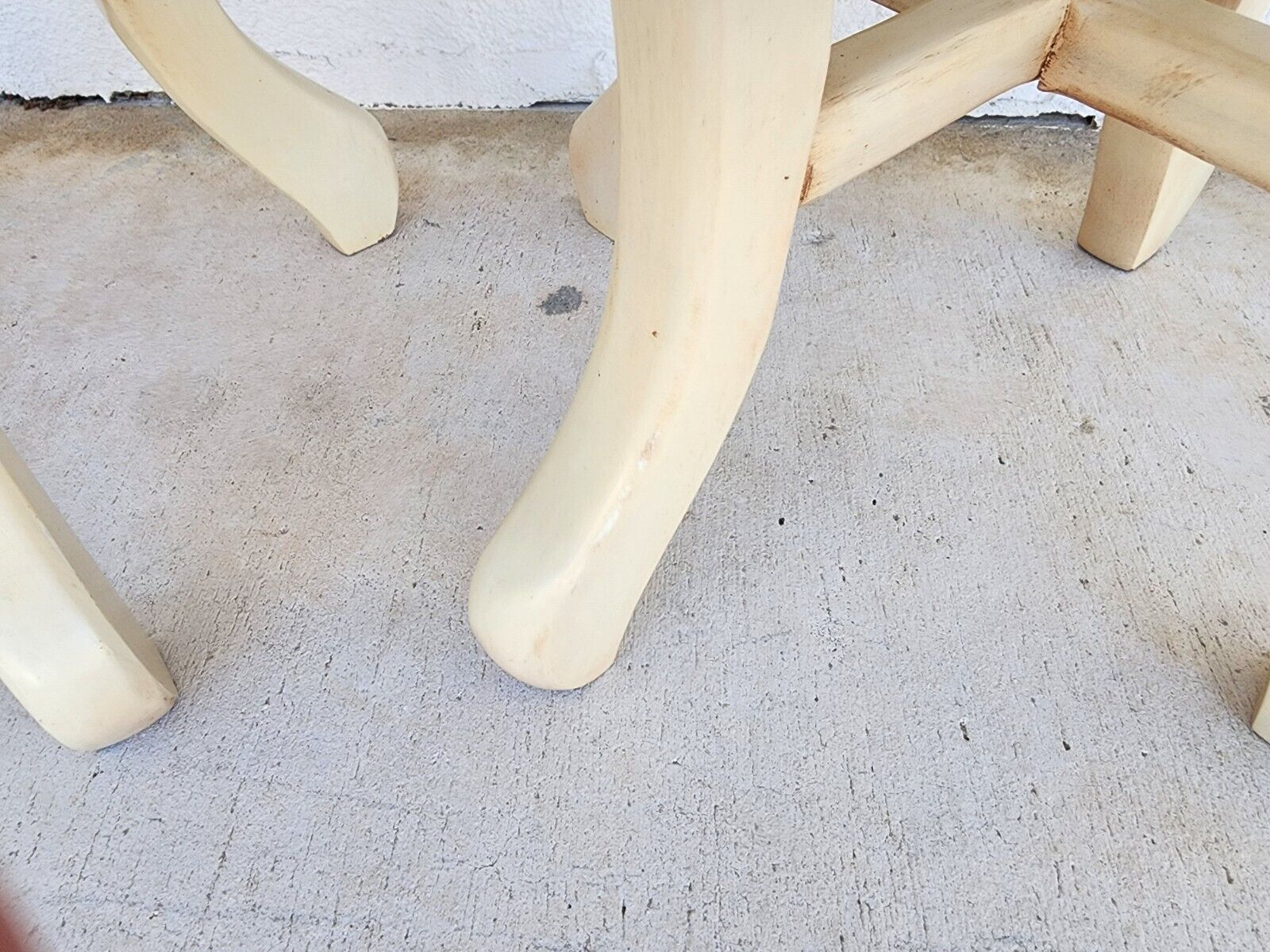 Both are in good, structurally sound, and sturdy condition with some small spots of wear mostly near the leg bottoms some of which are shown in the photos. The photos are an important part of the item description and condition so please use the zoom feature to view them closely.