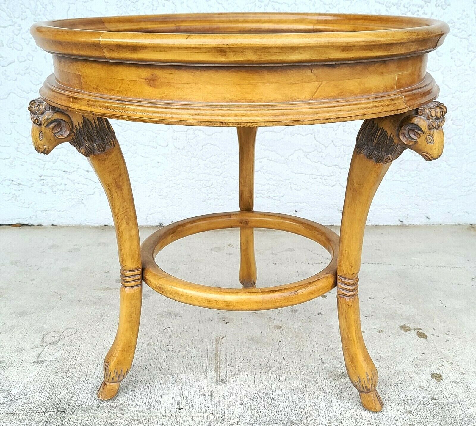 Gueridon Neoclassical Style Rams Head Hoof Footed Side Center Lamp Solid Wood Table