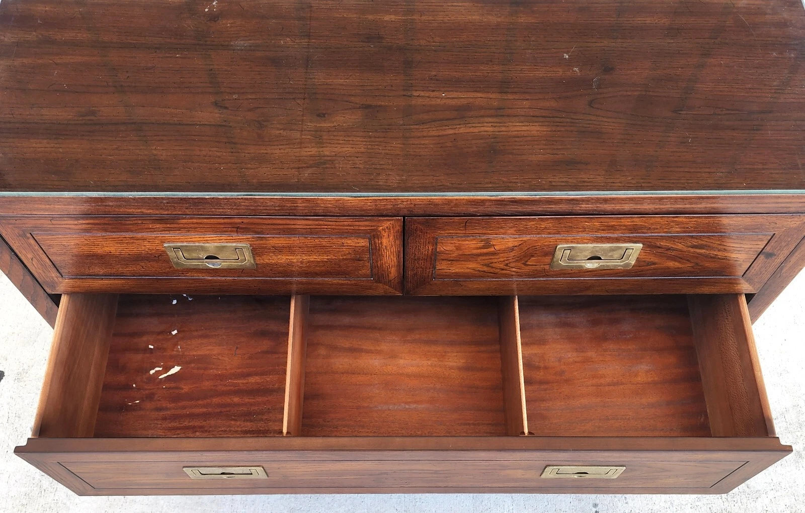 Henredon Chest Dresser Campaign Glass Top