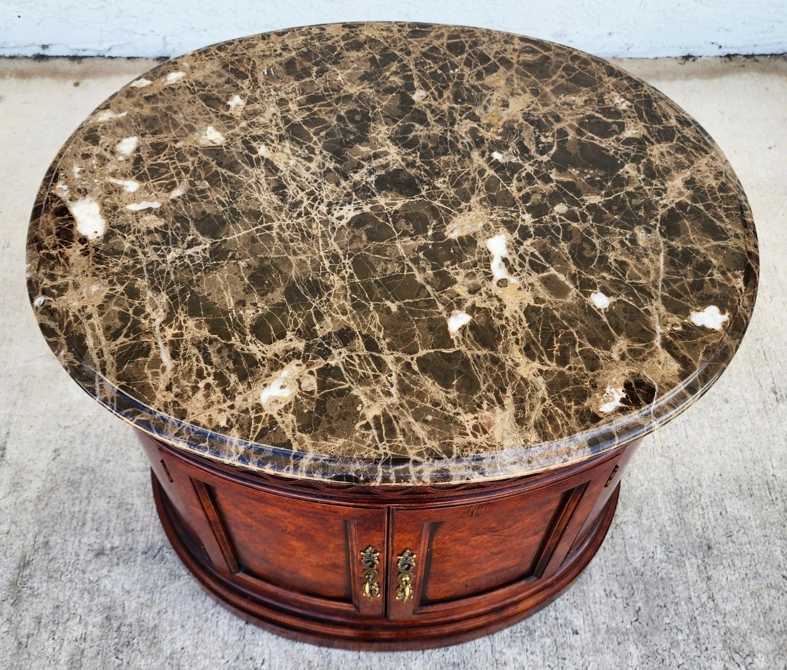 Wonderful Henredon Style Emperador Marble Top Drum Table