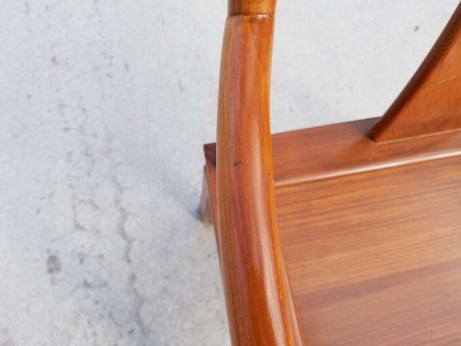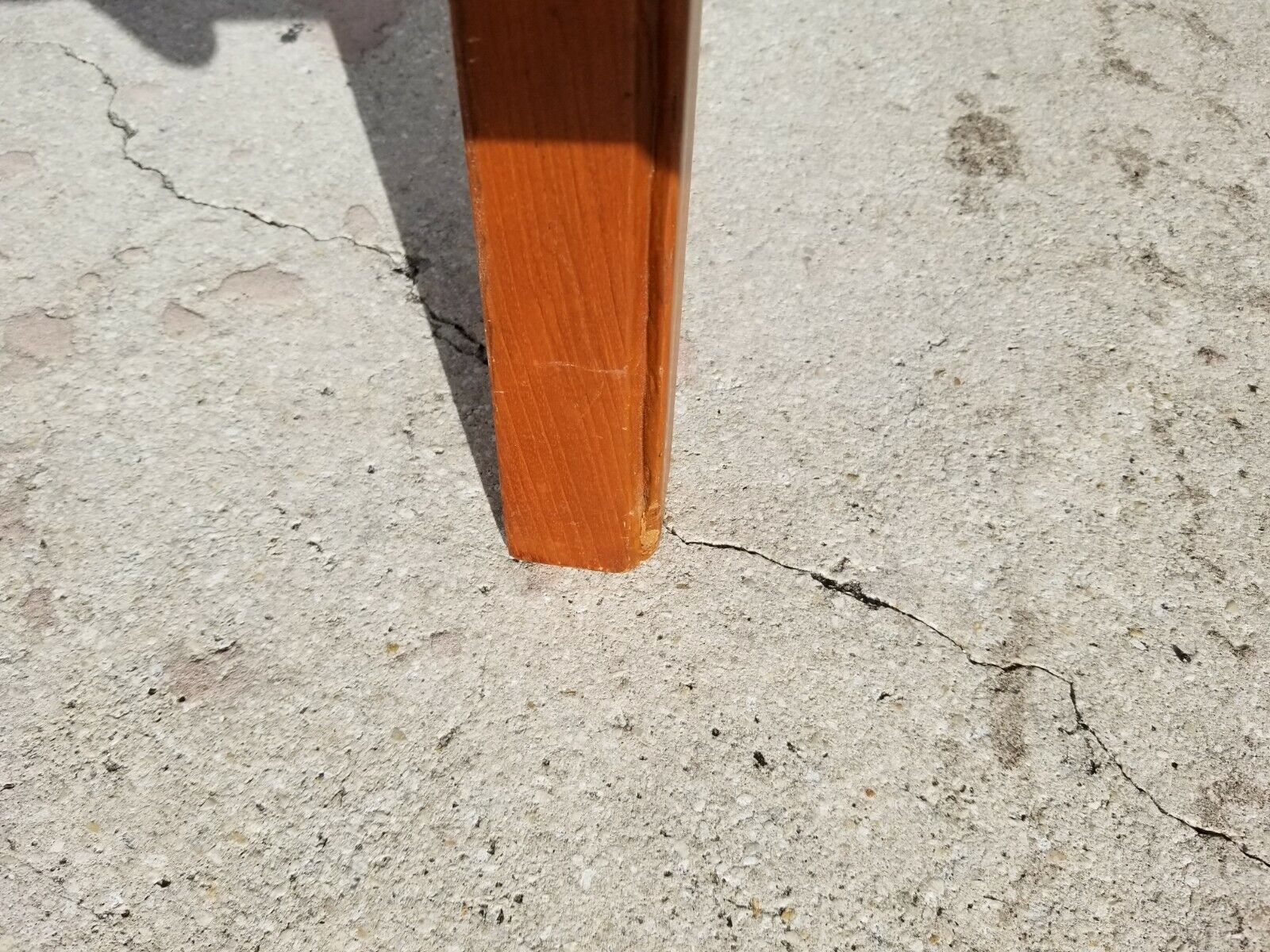 Structurally sound and sturdy with some dings and scratches as shown. Cushion has some stains but has a zipper so it is was washable.