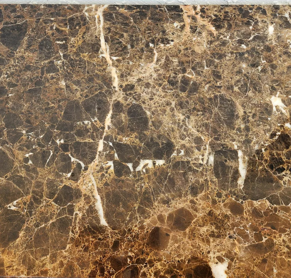 The solid wood has a slightly distressed look. Solid marble tops (removable)