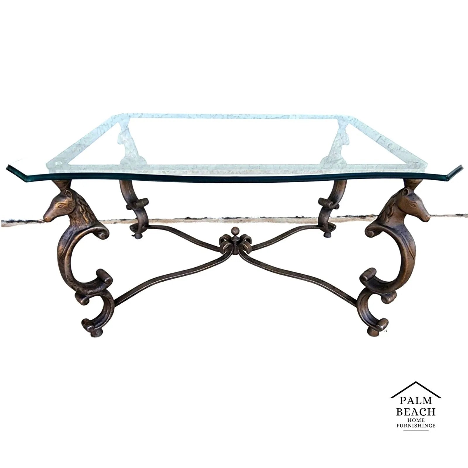 Vintage Maison Jansen Style Patinated Steel Horse Head and Hoof Footed Coffee Center Table