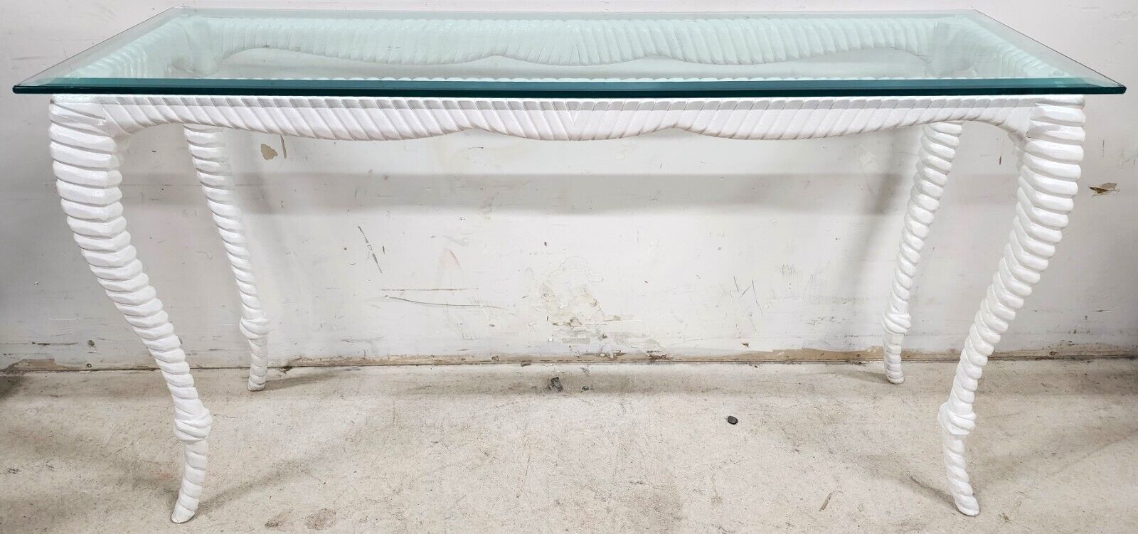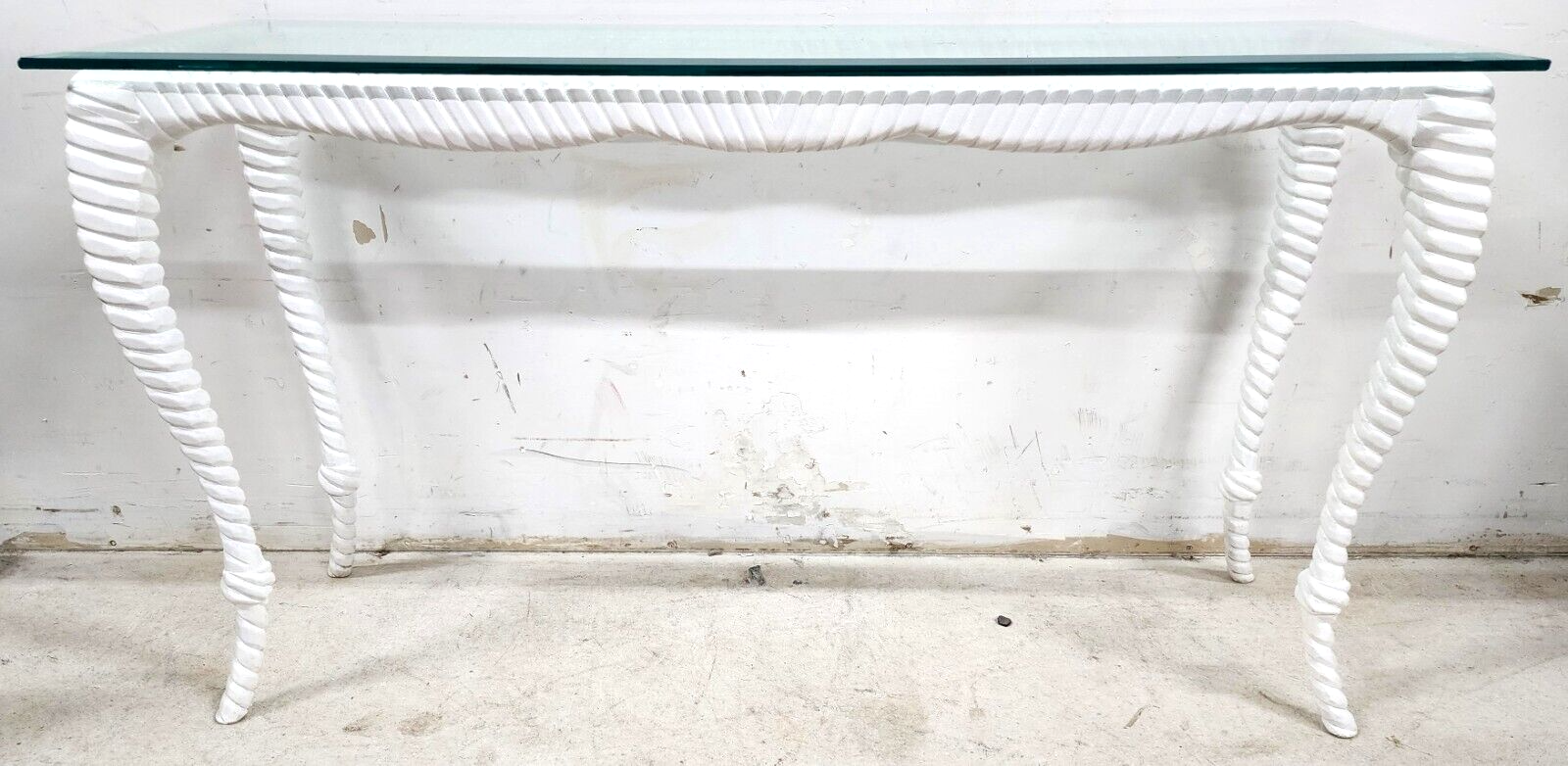 Italian Glass Console Solid Wood Faux Rope