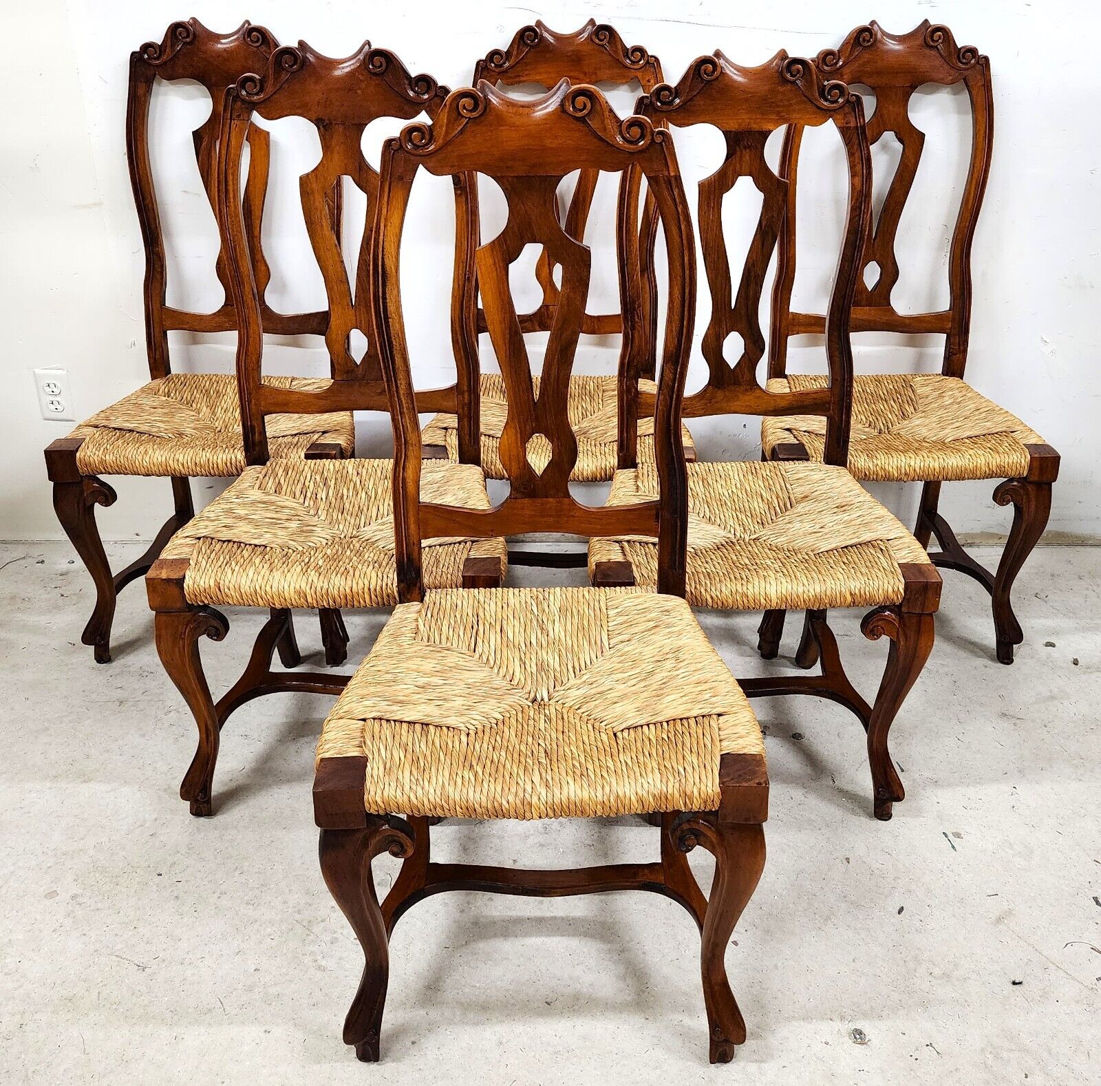 Italian Venetian Dining Chairs Walnut Rush Seat Hand Made (6)