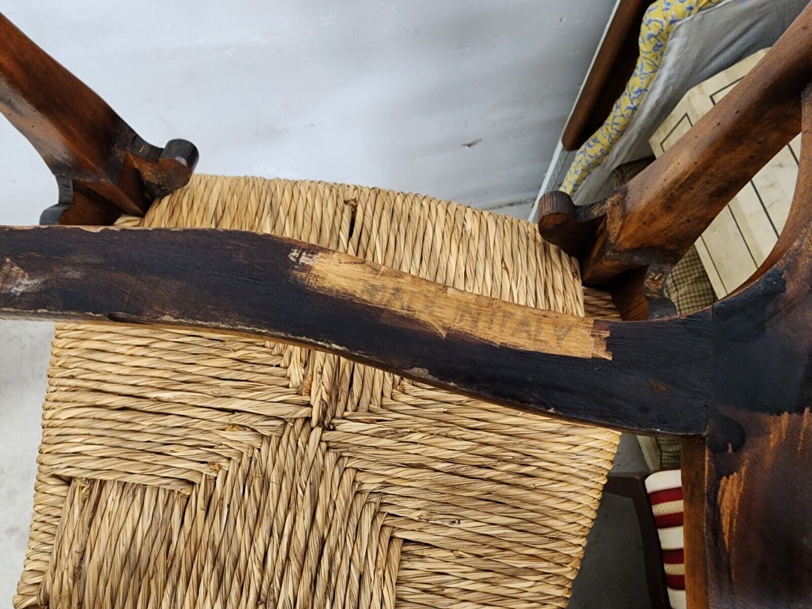 All are in good, structurally sound and sturdy condition with minor signs of use for age. Rush seats have no damage. The photos are an important part of the item description and condition so please use the zoom feature to view them closely.