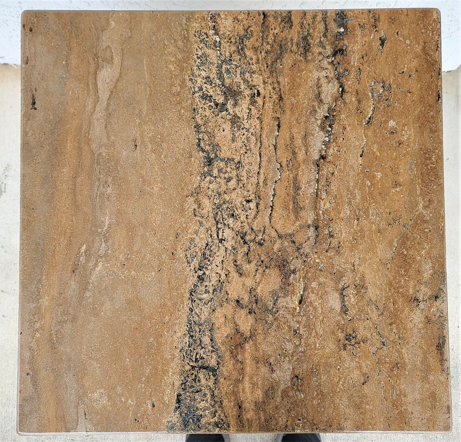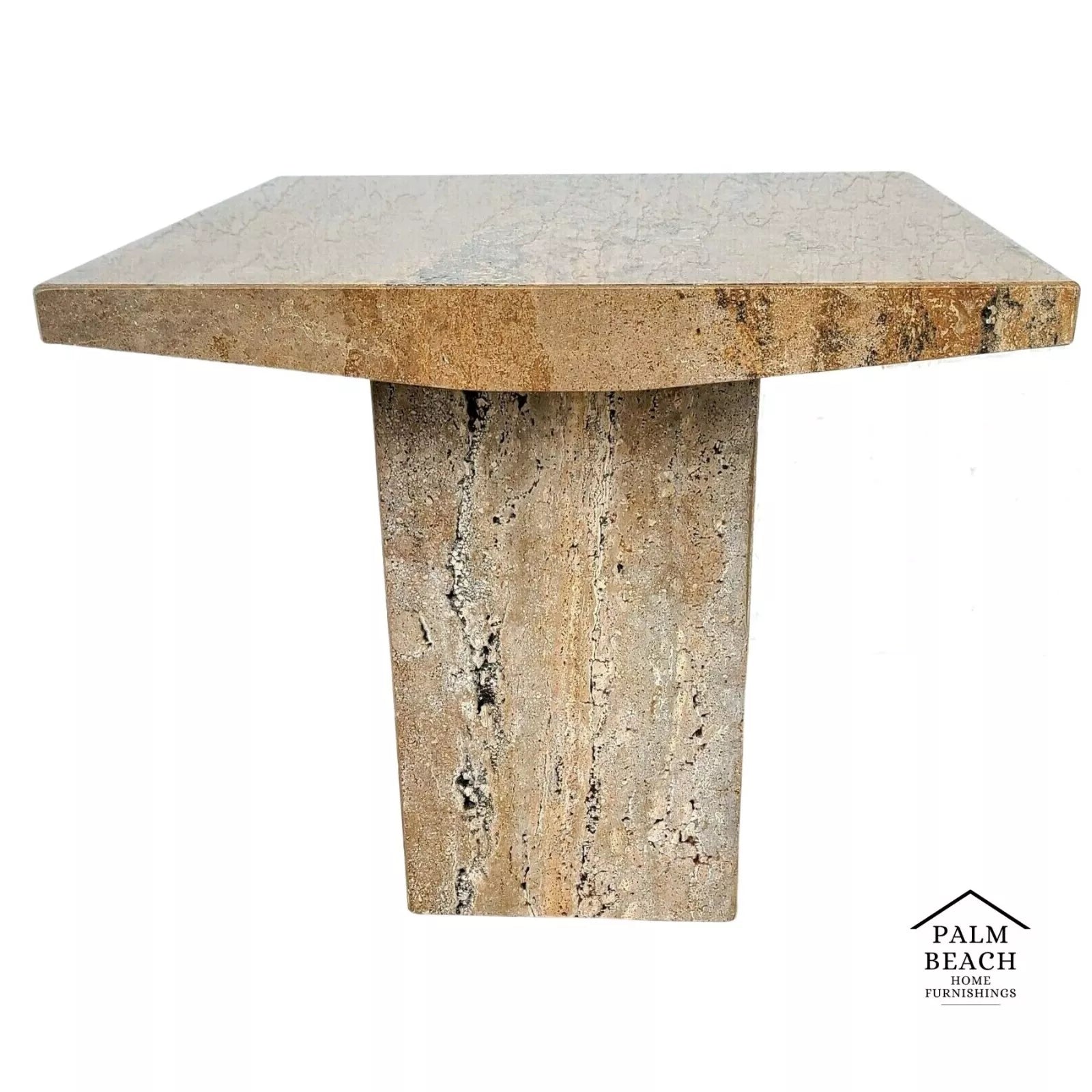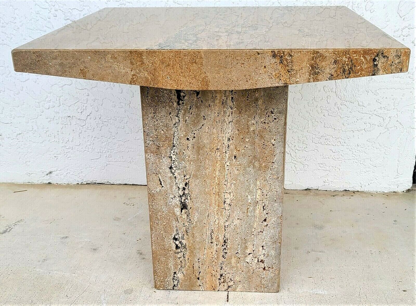 Vintage Mid Century Modern Filled and Honed Walnut Italian Travertine Marble Side End Table