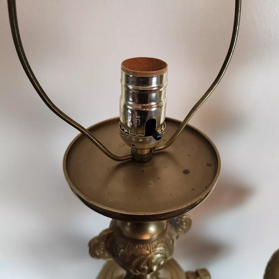 James Mont Style Foo Dog Chinoiserie Brass Lamps Vintage Pair