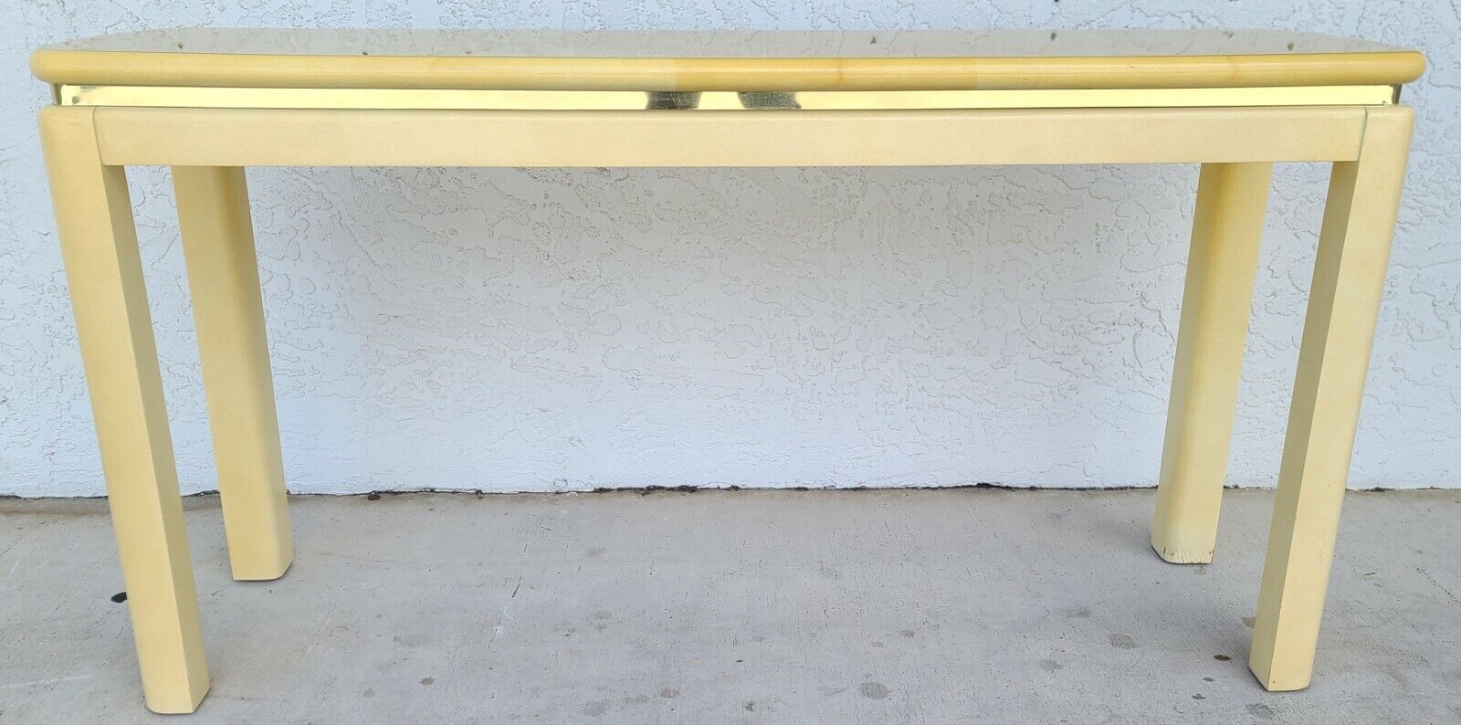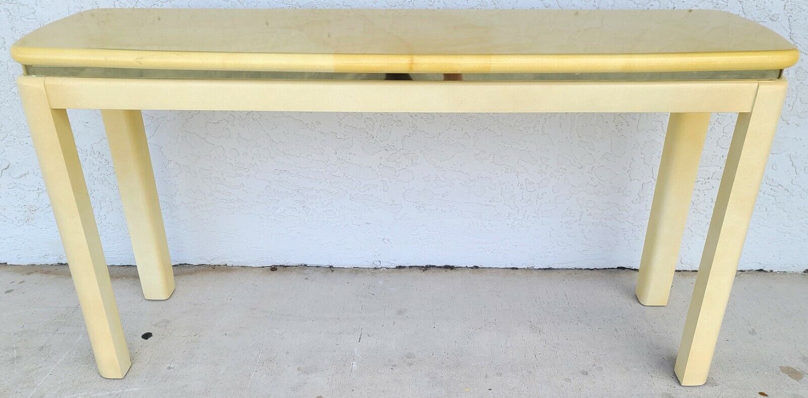 1980's KARL SPRINGER Style Faux Lacquered Goatskin Console Sofa Table