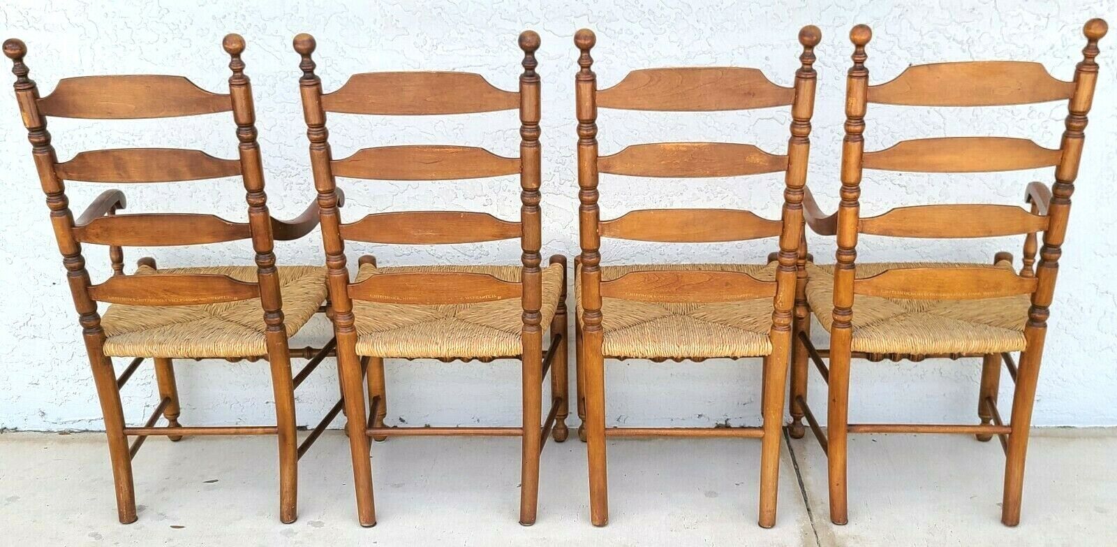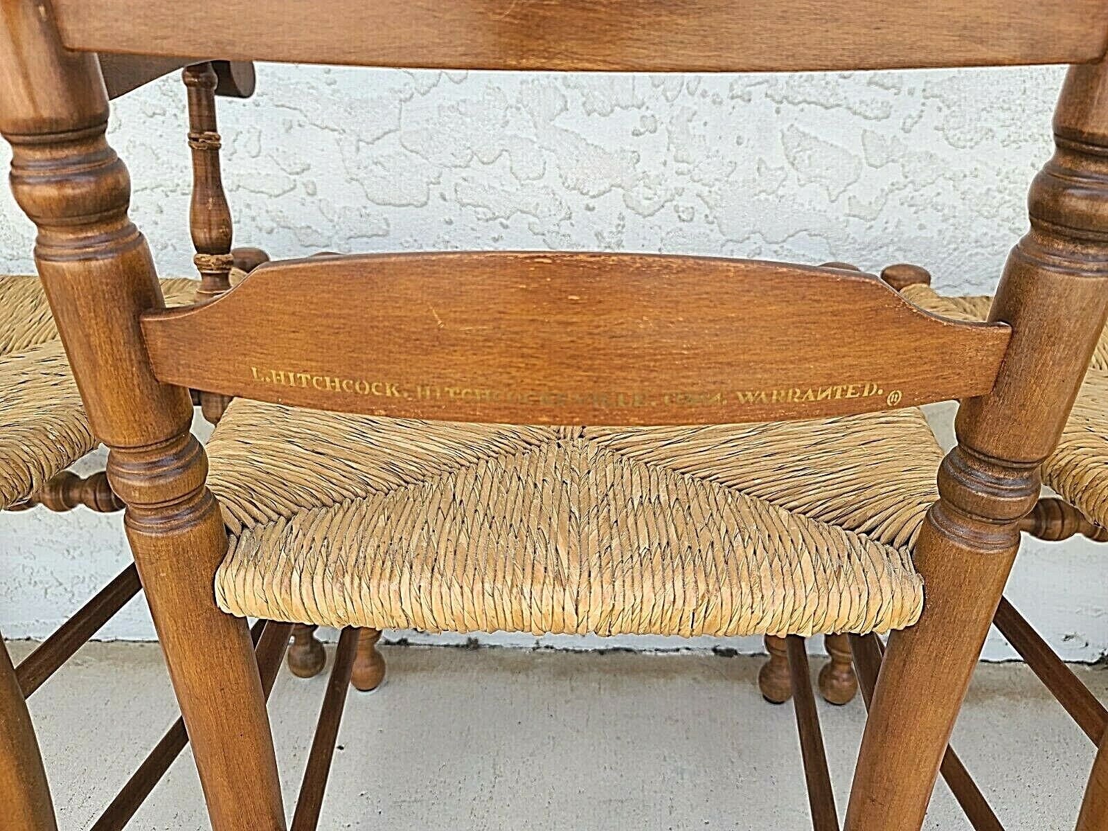 Set of 4 Vintage L Hitchcock Harvest Stenciled Ladder Back Rush Seat Dining Chairs