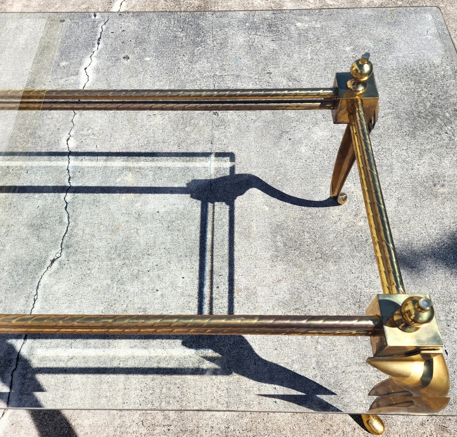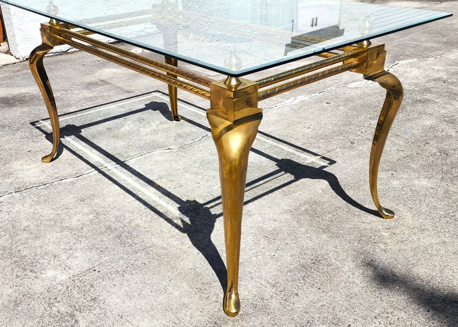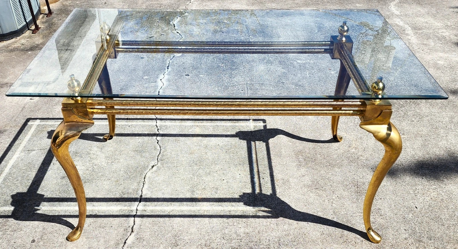 Vintage 1970s La Barge Brass Dining Table or Desk with Beveled Glass Top
