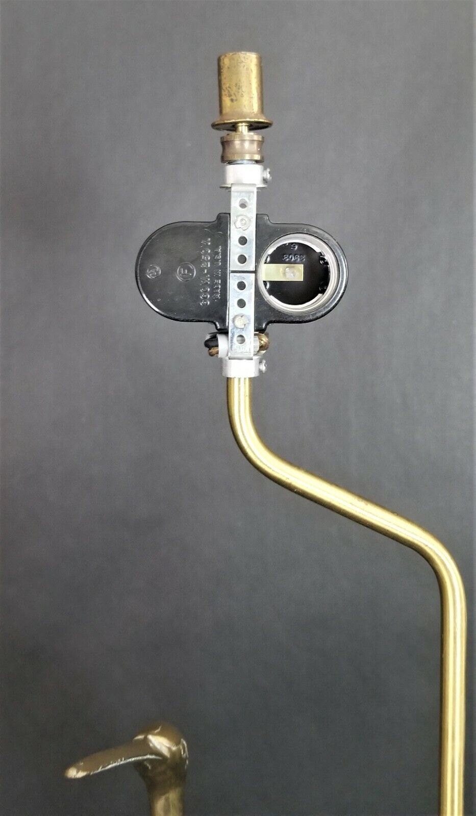 Large Mid Century Vintage Asian Chinoiserie Table Lamp Brass Cranes on Wood Base