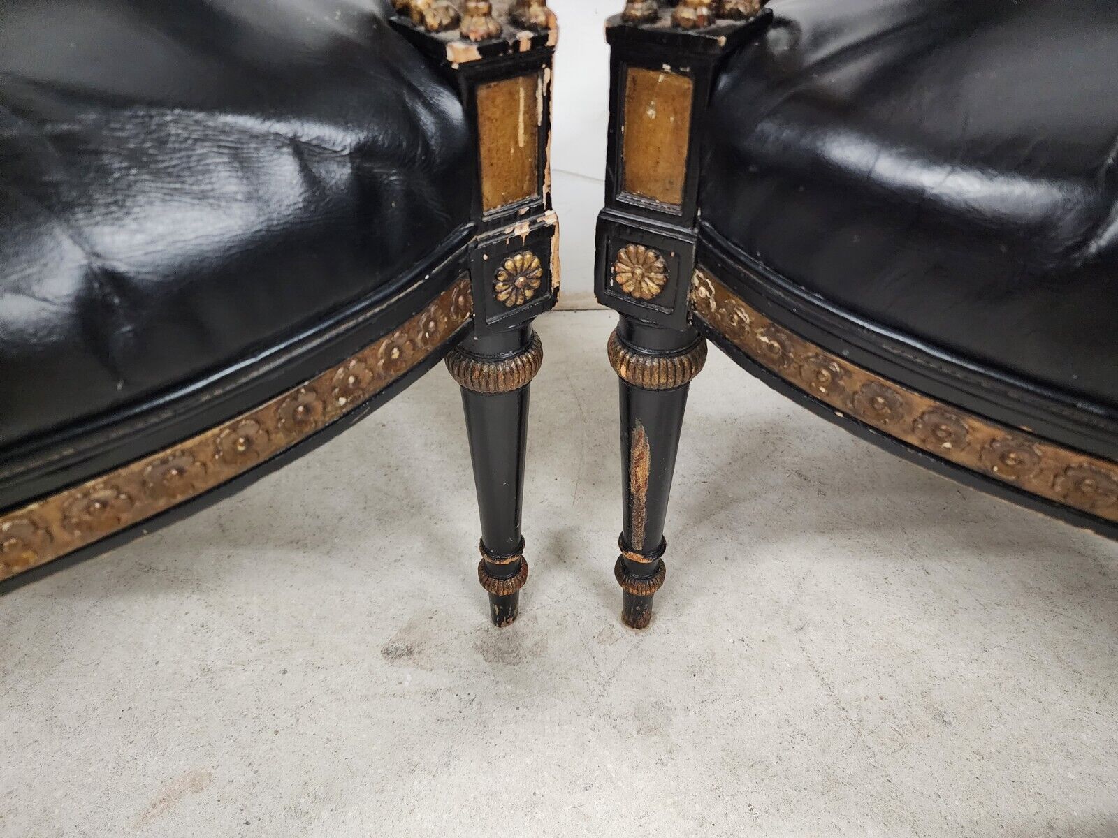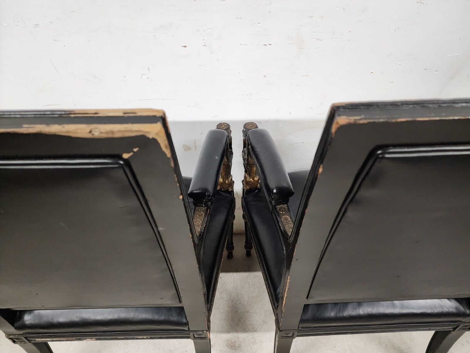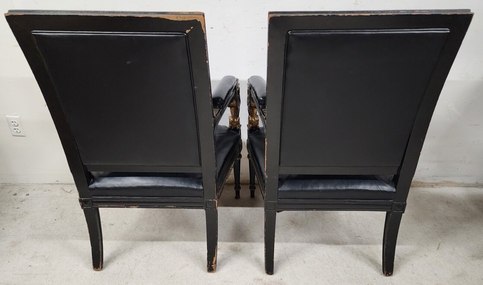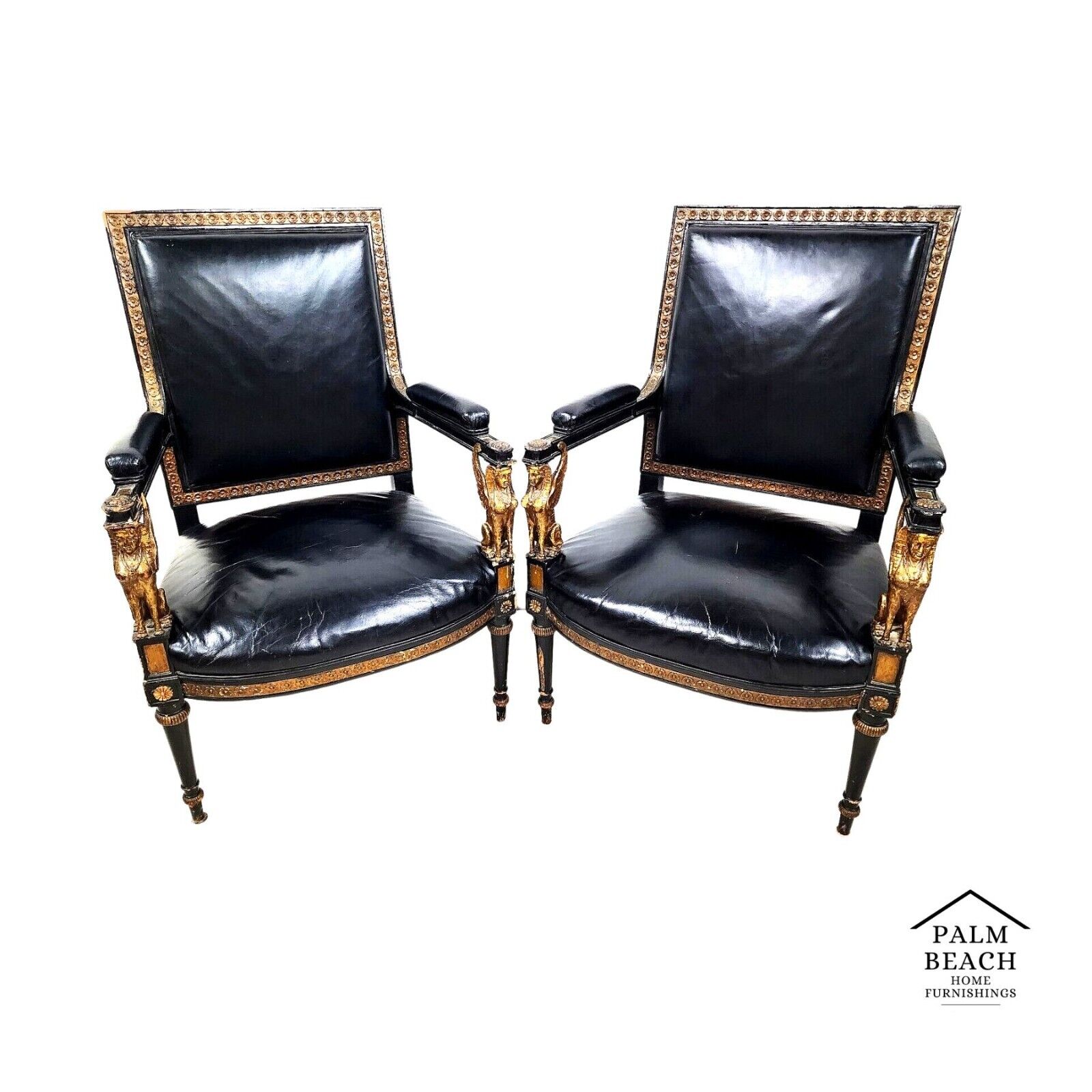 Pair of Mid Century Empire Style Leather Armchairs with Sphinx Arm Supports