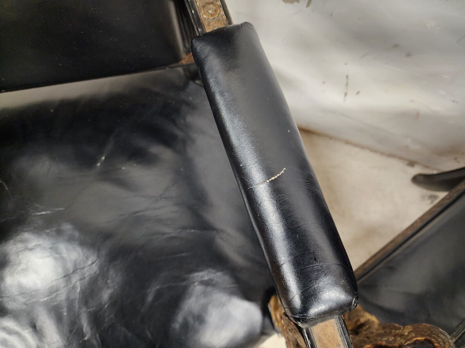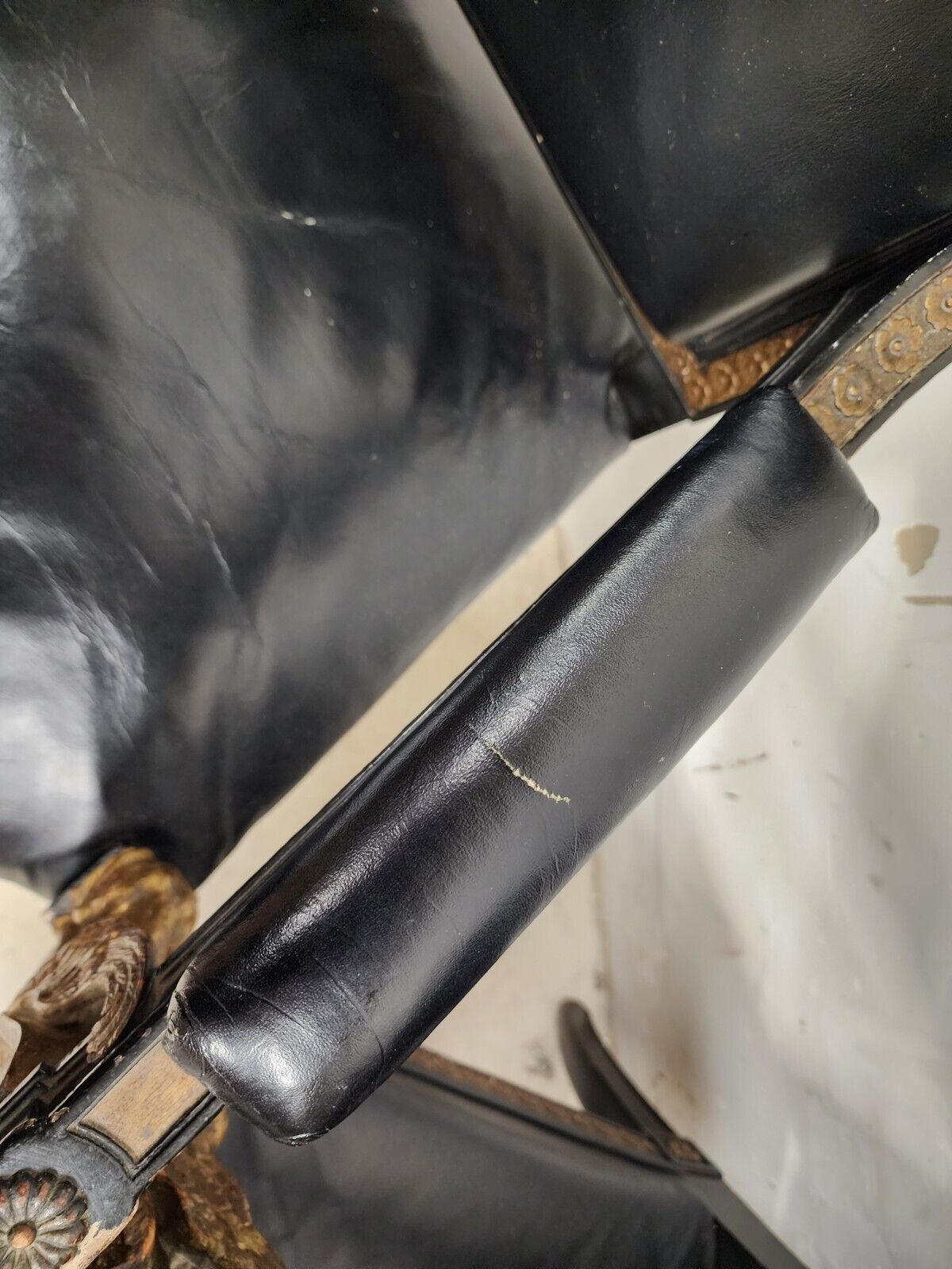In structurally sound and sturdy condition. The leather has some surface cracks (not cuts). There is wear to wood and gilt finish as shown. The photos are an important part of the item description and condition so please use the zoom feature to view them closely.