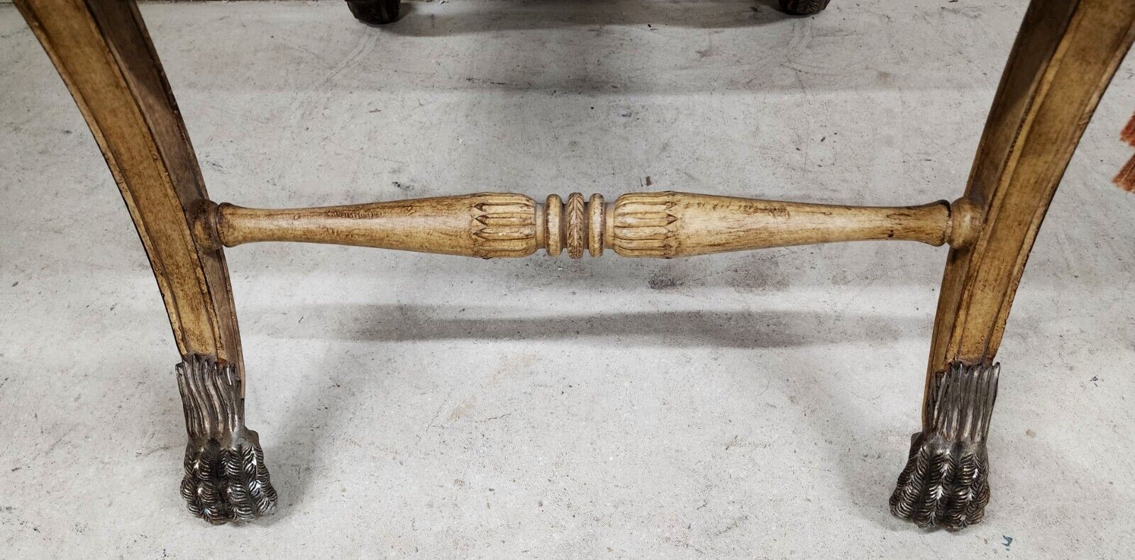 Featuring metal Leopard heads and claw feet accents on the fronts of the arms and bottoms of the legs.