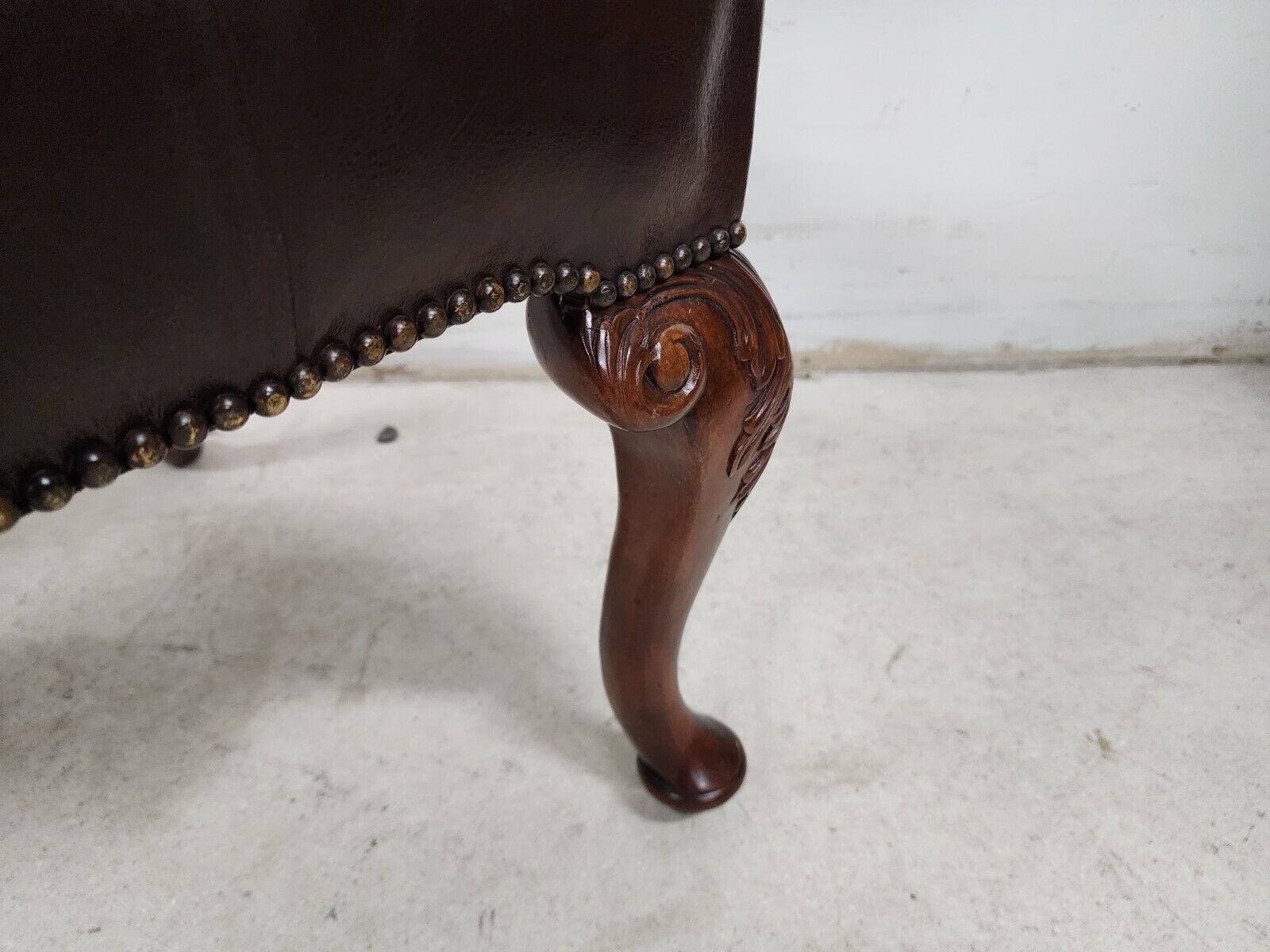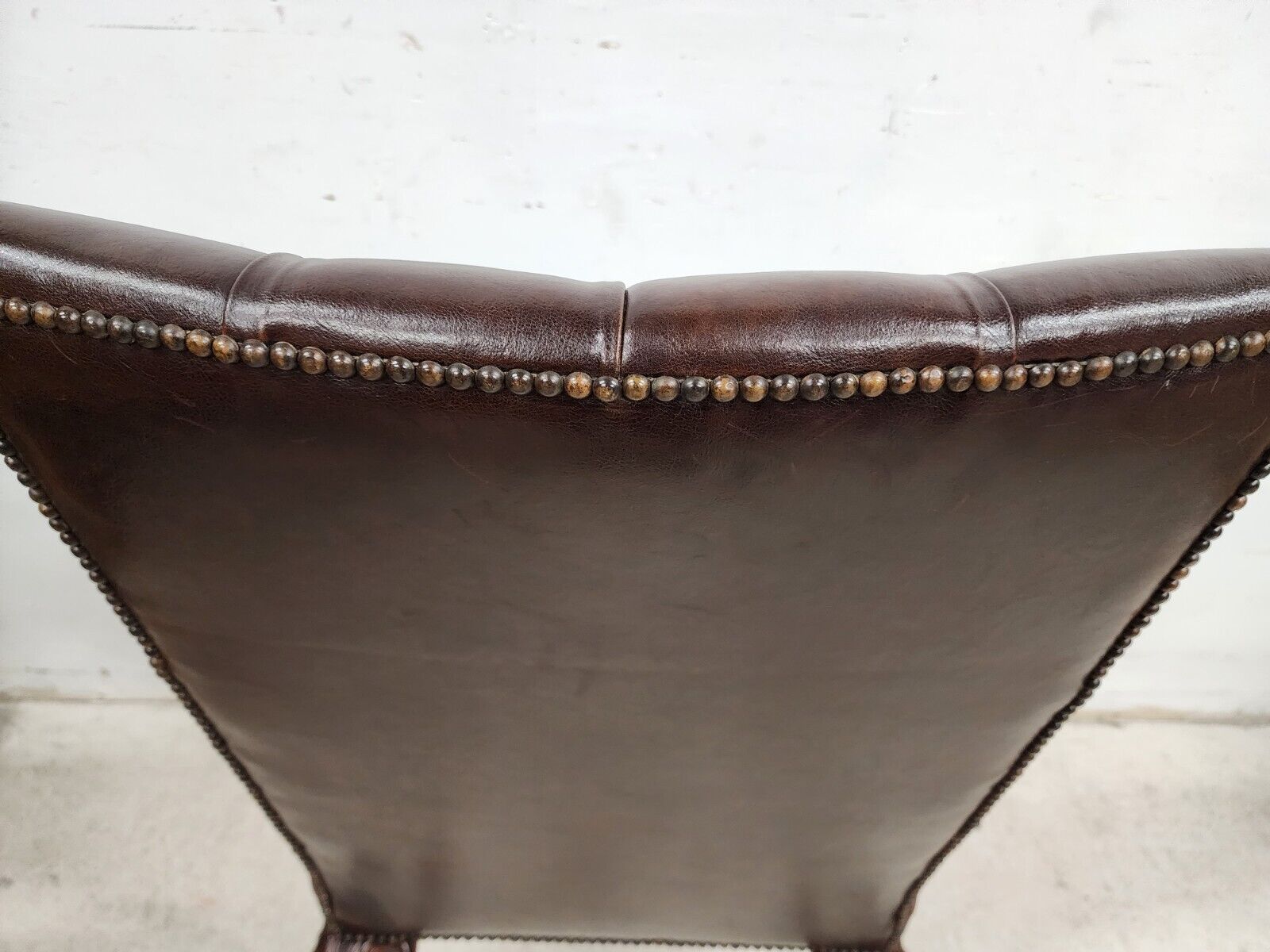 In very good, structurally sound and sturdy condition with no notable damage to top grain leather or solid wood frame. The photos are an important part of the item description and condition so please use the zoom feature to view them closely.