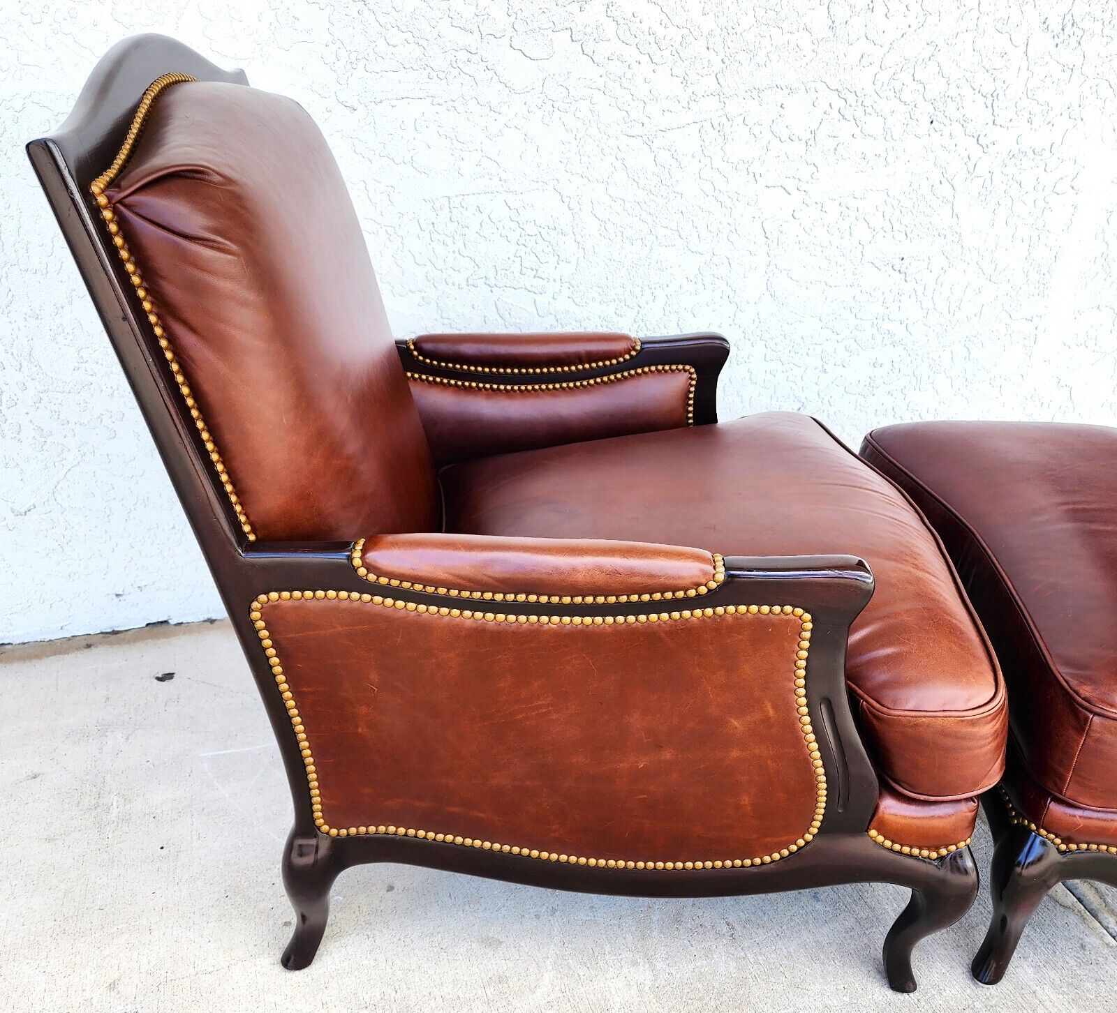 Highly Stylized Top Grain Leather Lounge Chair and Ottoman by Henredon Leather Company.