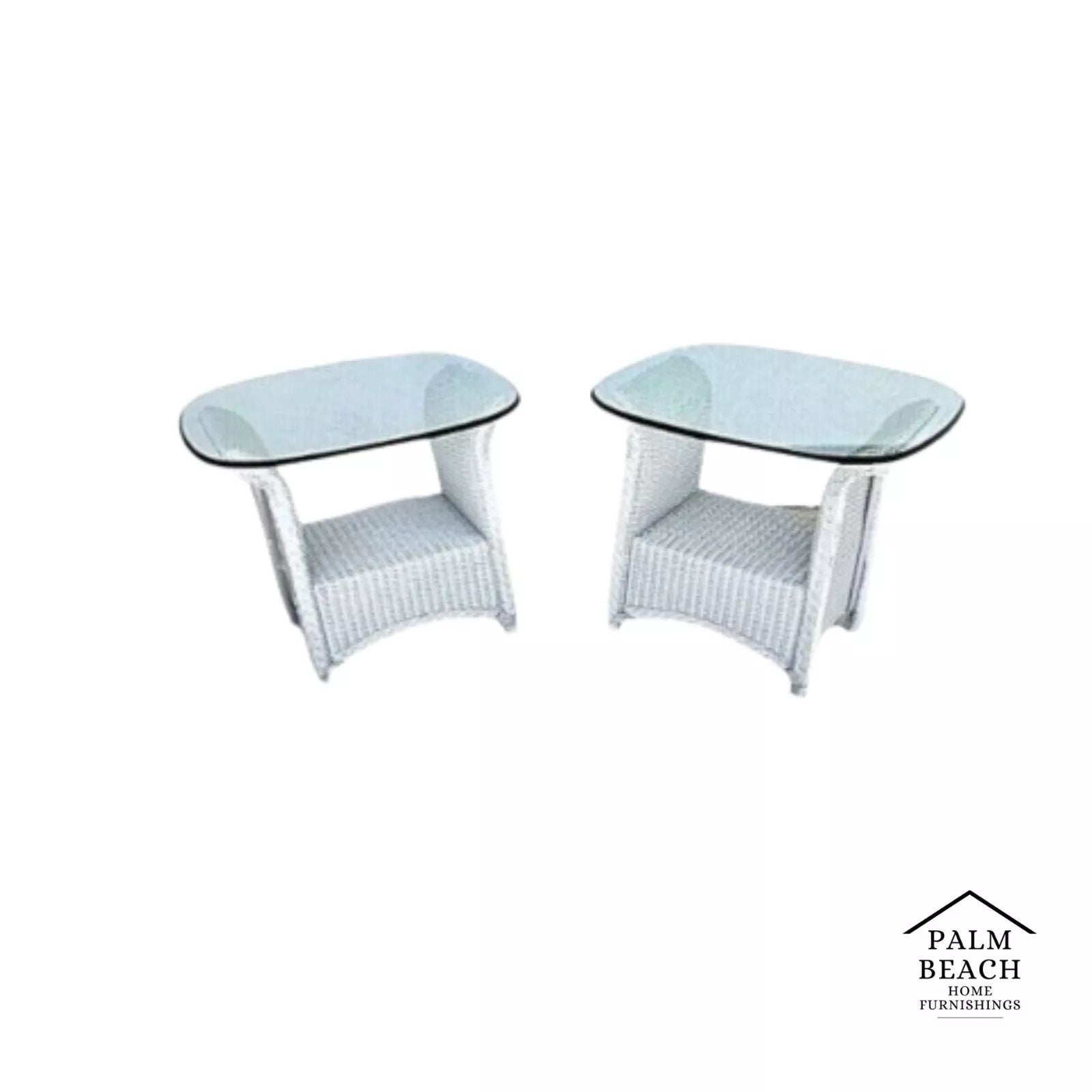 Vintage Set Of 2 LLOYD LOOM Flanders Wicker Weather Resistant Side Tables w Glass