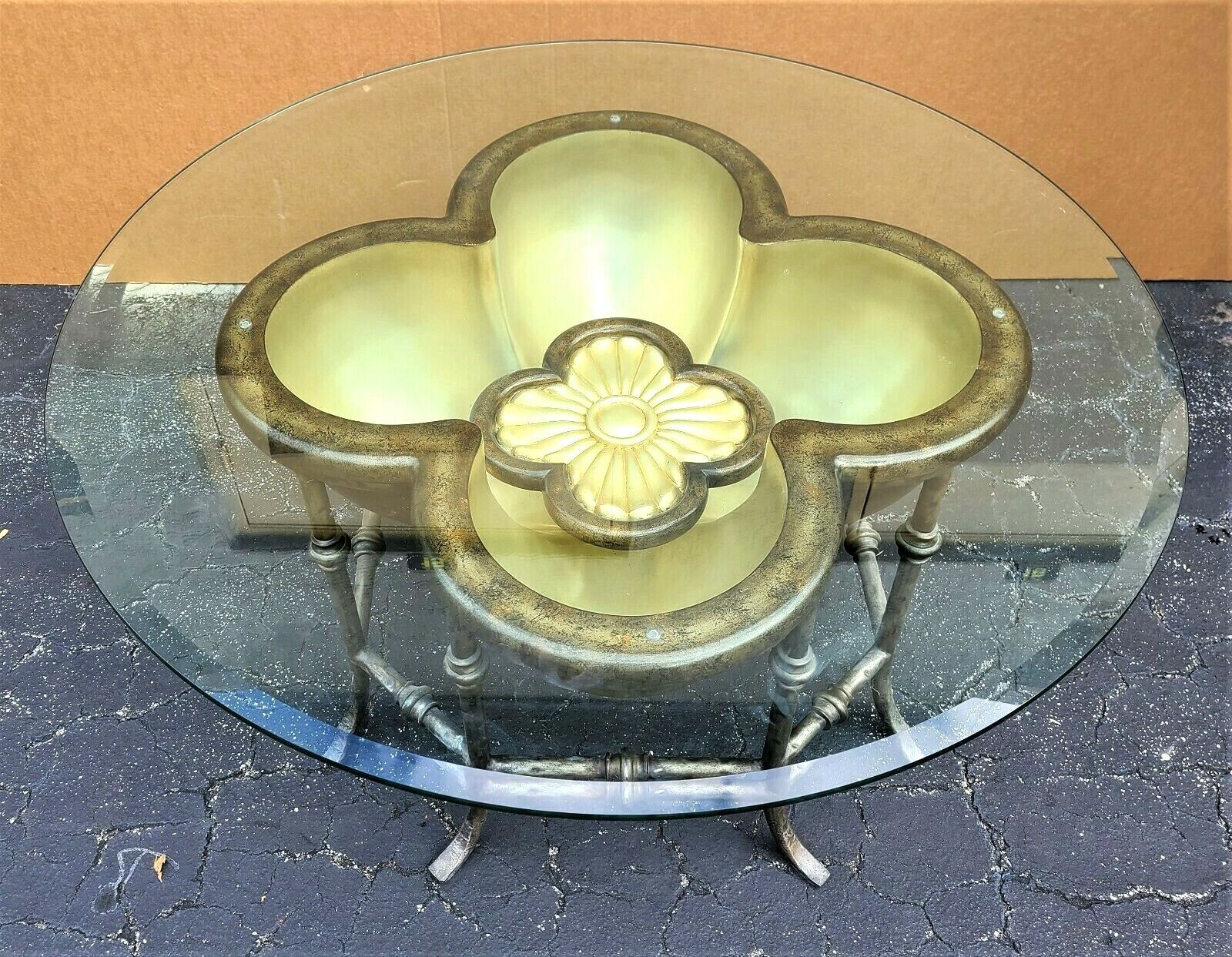 Lotus Flower Glass Top Indoor Outdoor Cocktail Side End Table 48"