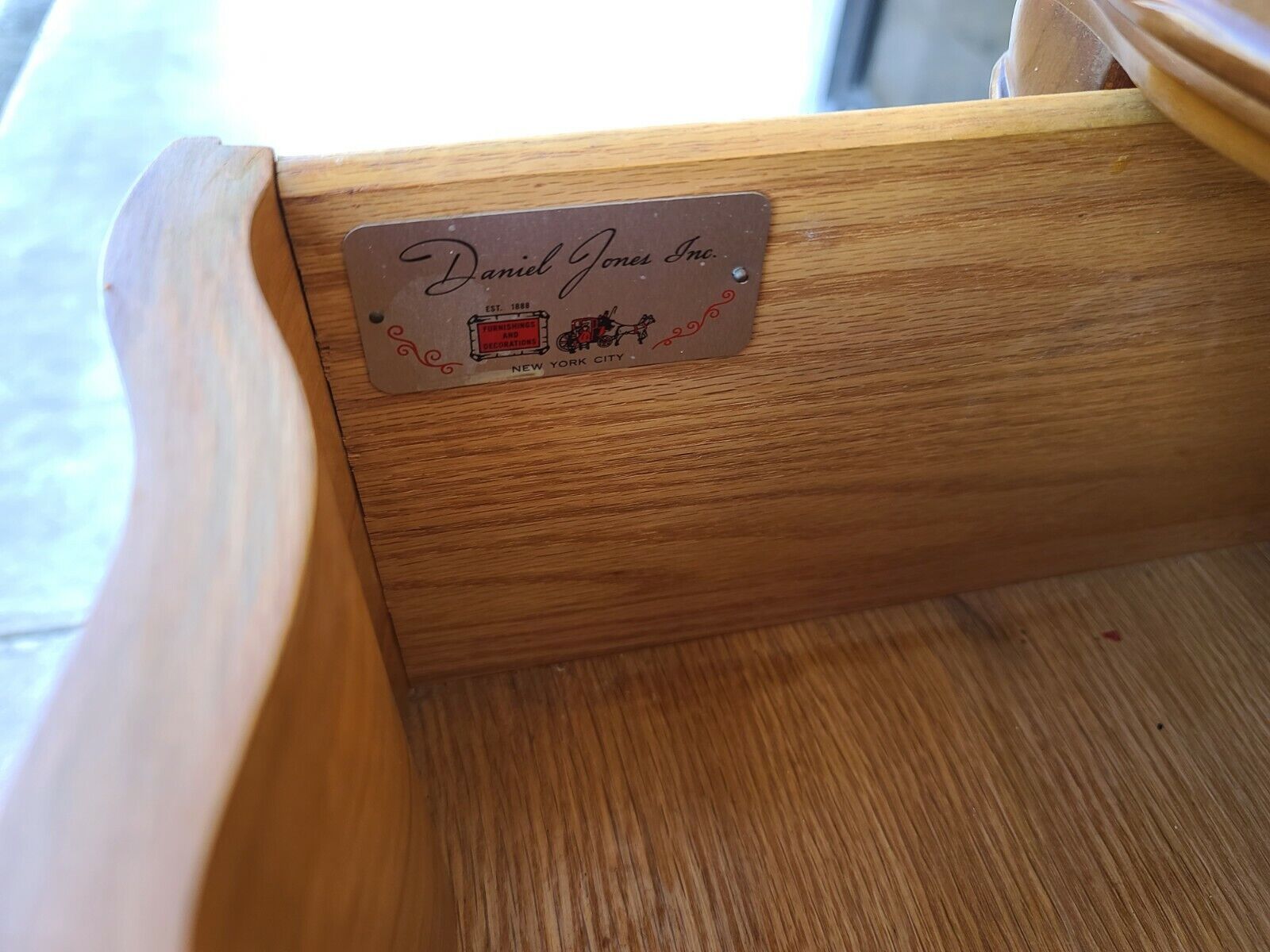 Extremely well built piece. In structurally sound and sturdy condition with some small spots of wear around its top edge the worst of which are shown in the photos. Drawers work smoothly.