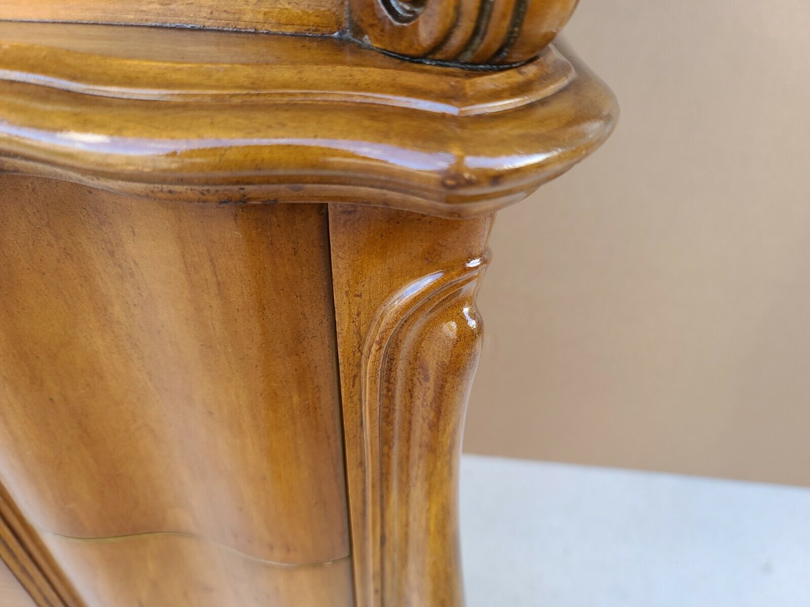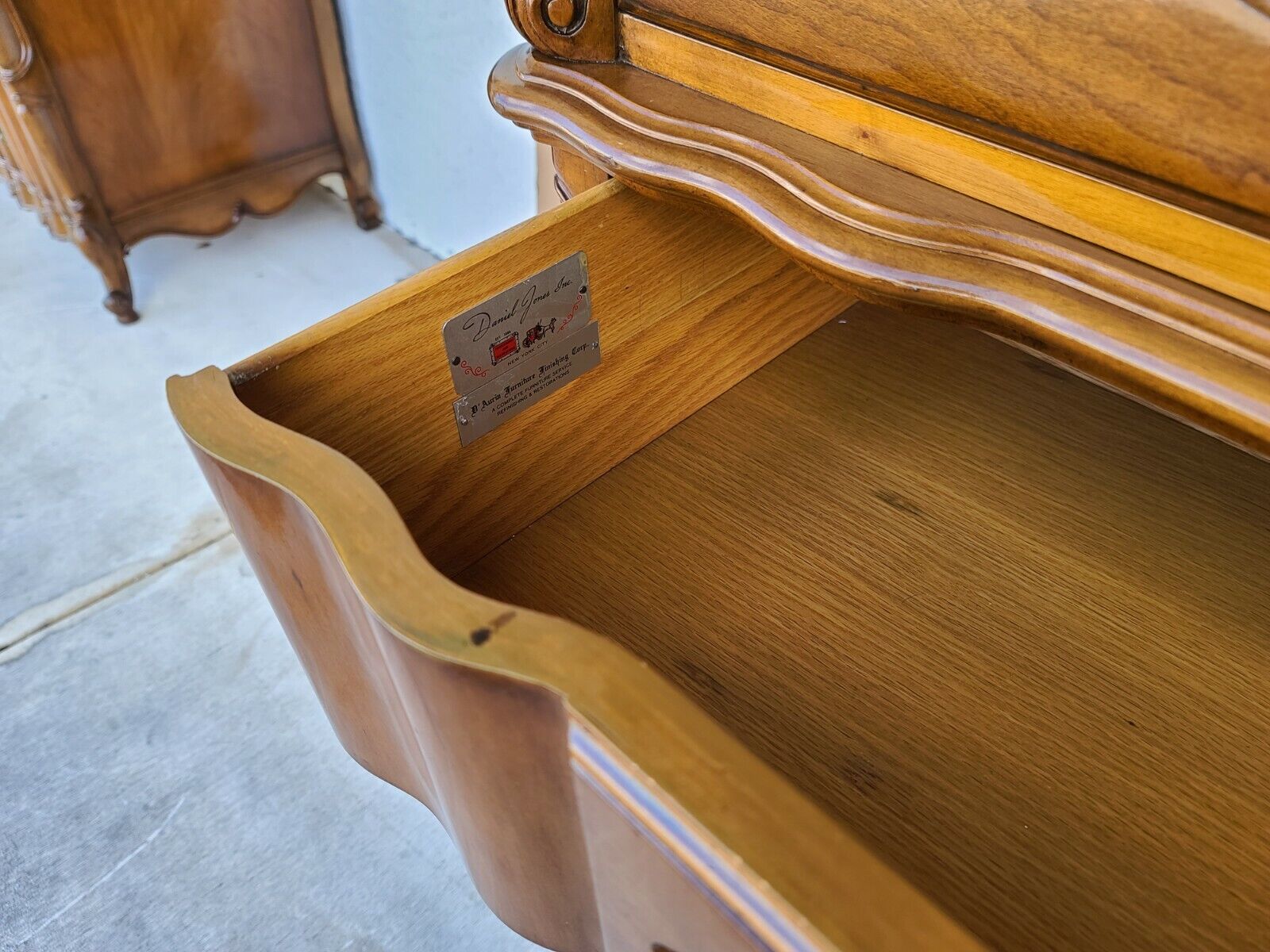 Extremely well built piece. In structurally sound and sturdy condition with some small spots of wear around its top edge as shown. Drawers work smoothly. The photos are an important part of the item description and condition so please use the zoom feature to view them closely.