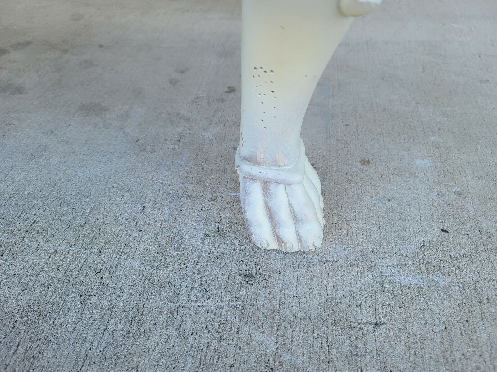 Newly Reupholstered Shabby Chic Tropical Island Solid Wood Linen Bench With Carved Paw Feet