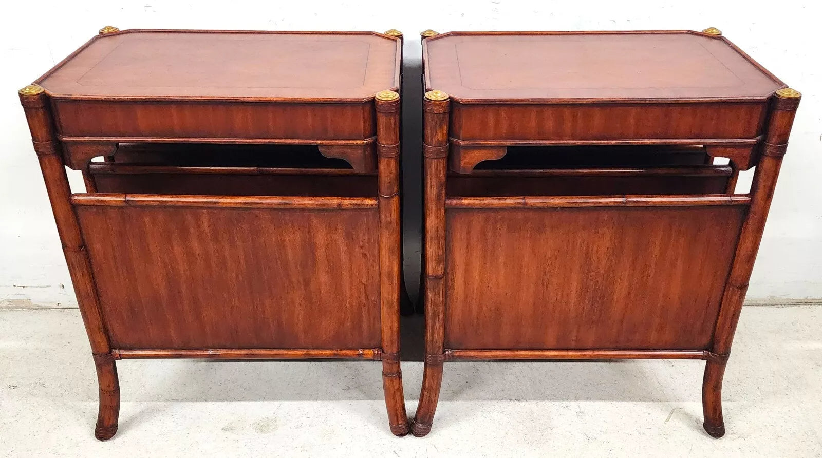 Pair of Mahogany Bamboo Rattan End Side Tables with Magazine Racks