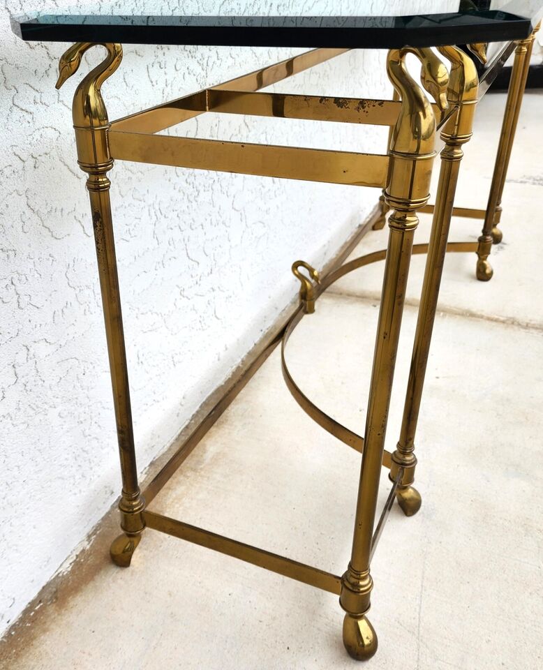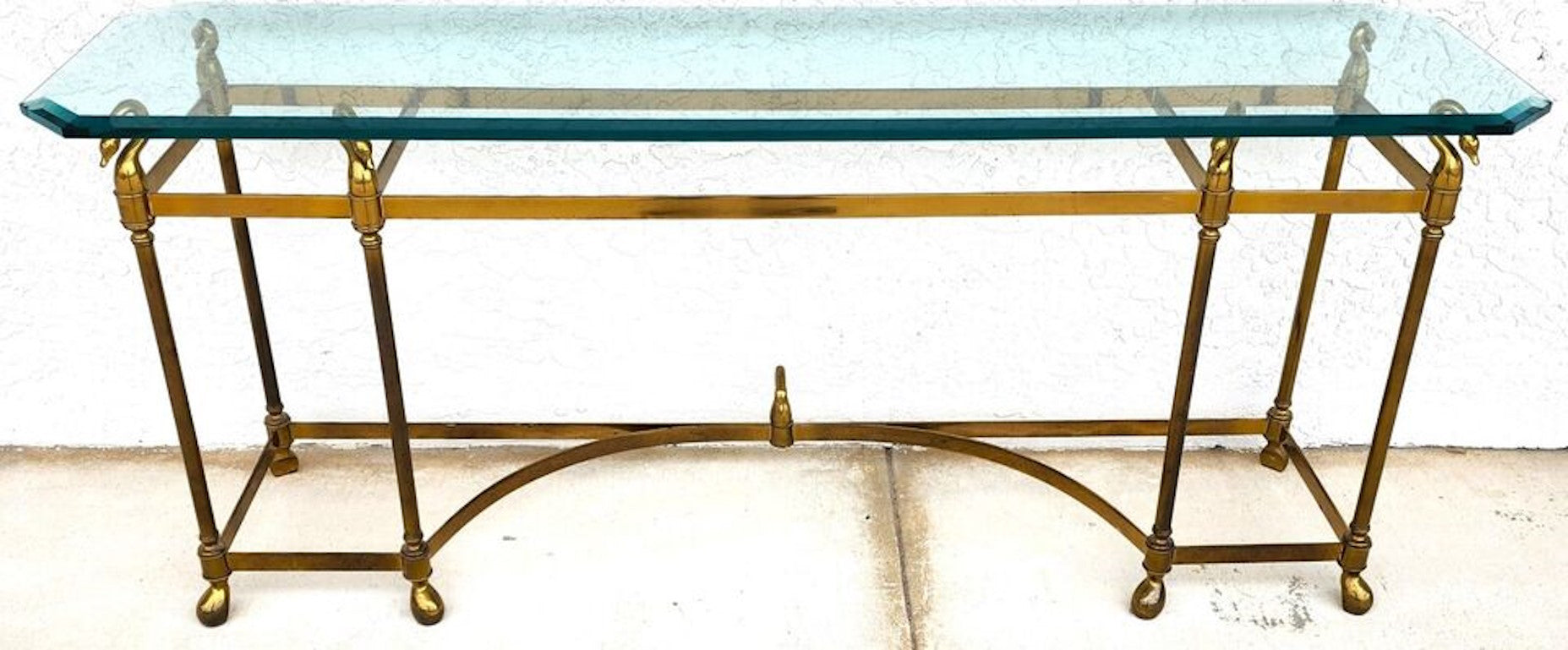 Vintage Maison Jansen LaBarge Style Brass Swan & Glass Console Sofa Table