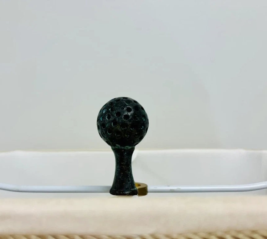 Featuring the original shade, Bronze Golf Ball finial, and a base of 2 "Leather" bound Golf Books atop 4 Bronze Golf Ball feet.