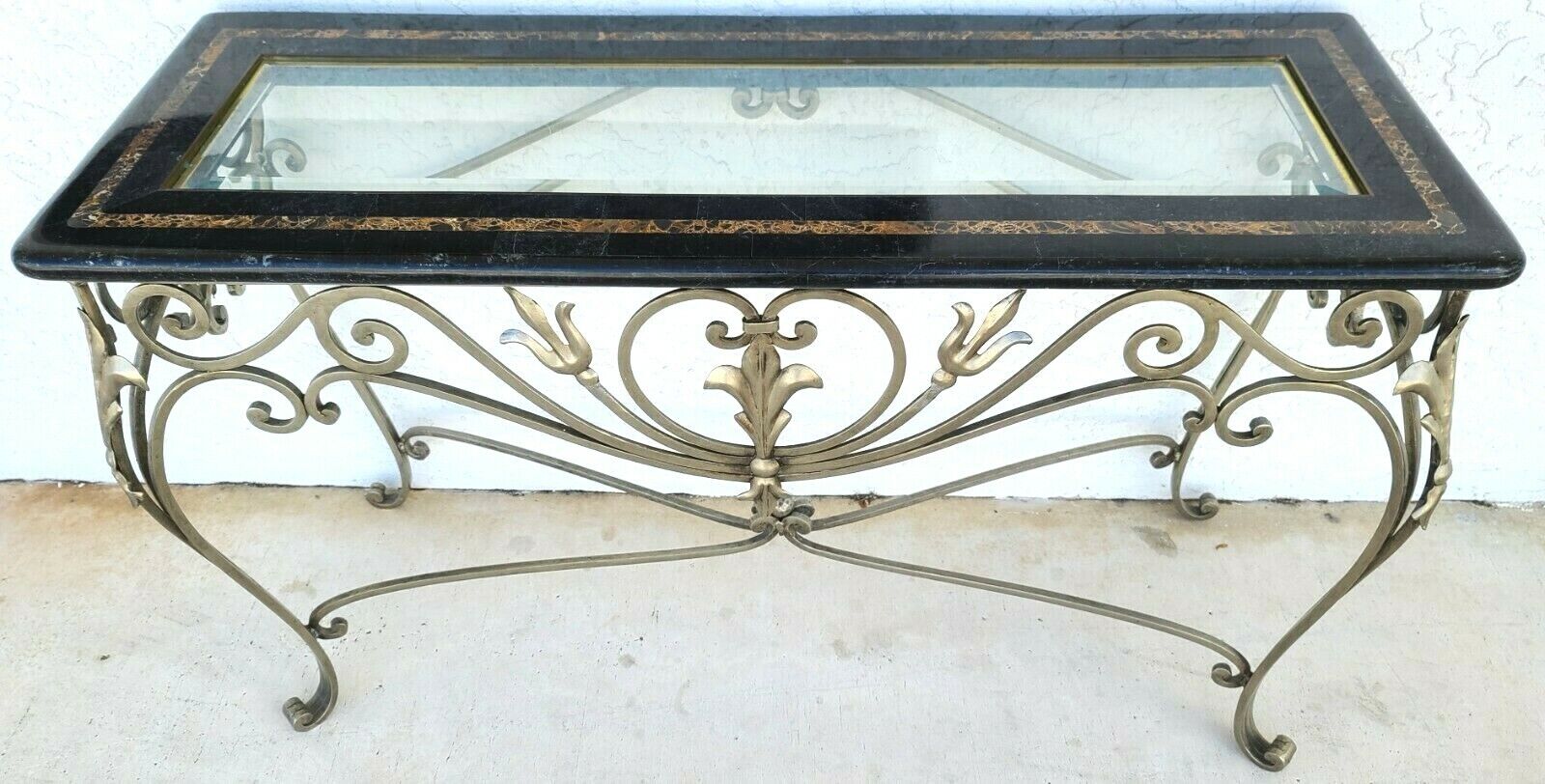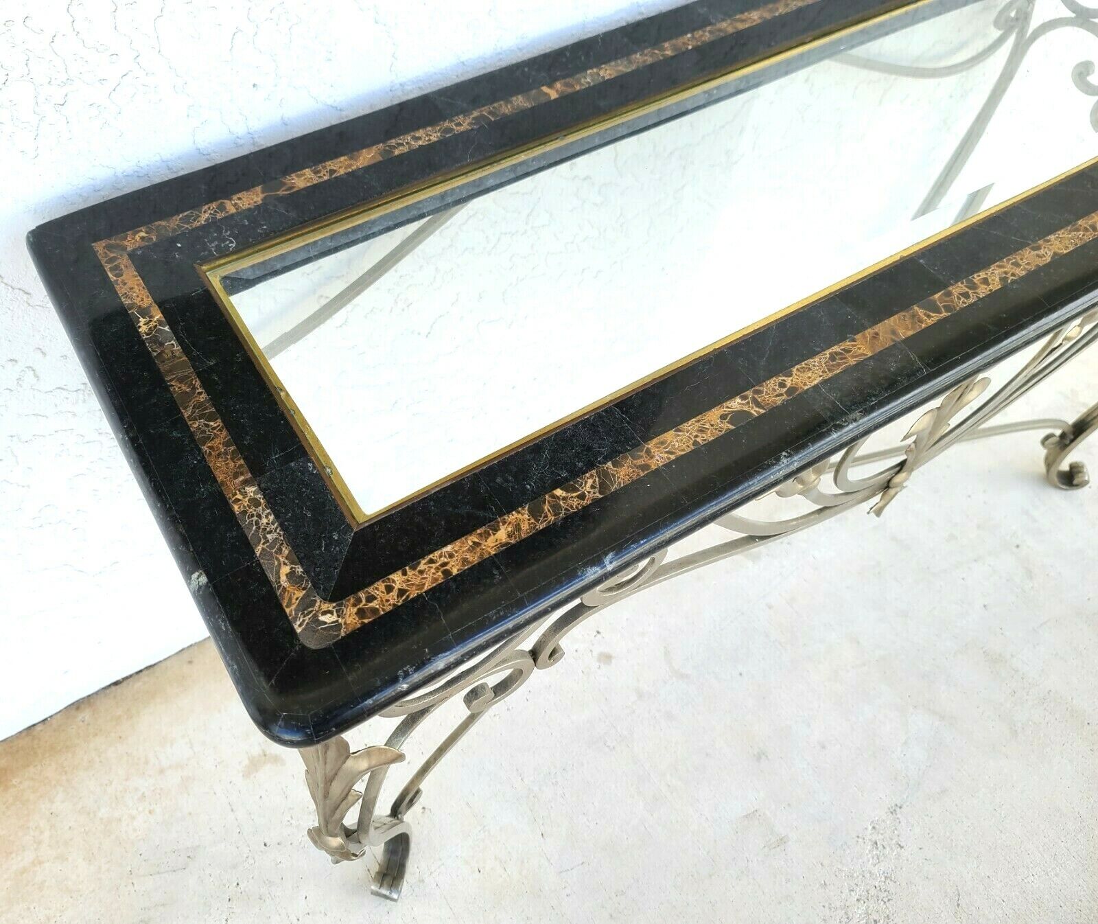MAITLAND SMITH Tessellated Marble Brushed Steel Glass Console Sofa Table