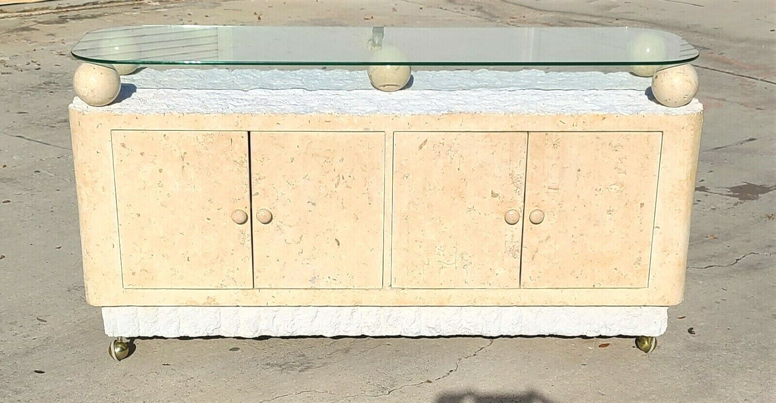 MAITLAND Style Postmodern Tessellated Stone Rolling Credenza Buffet Dry Bar