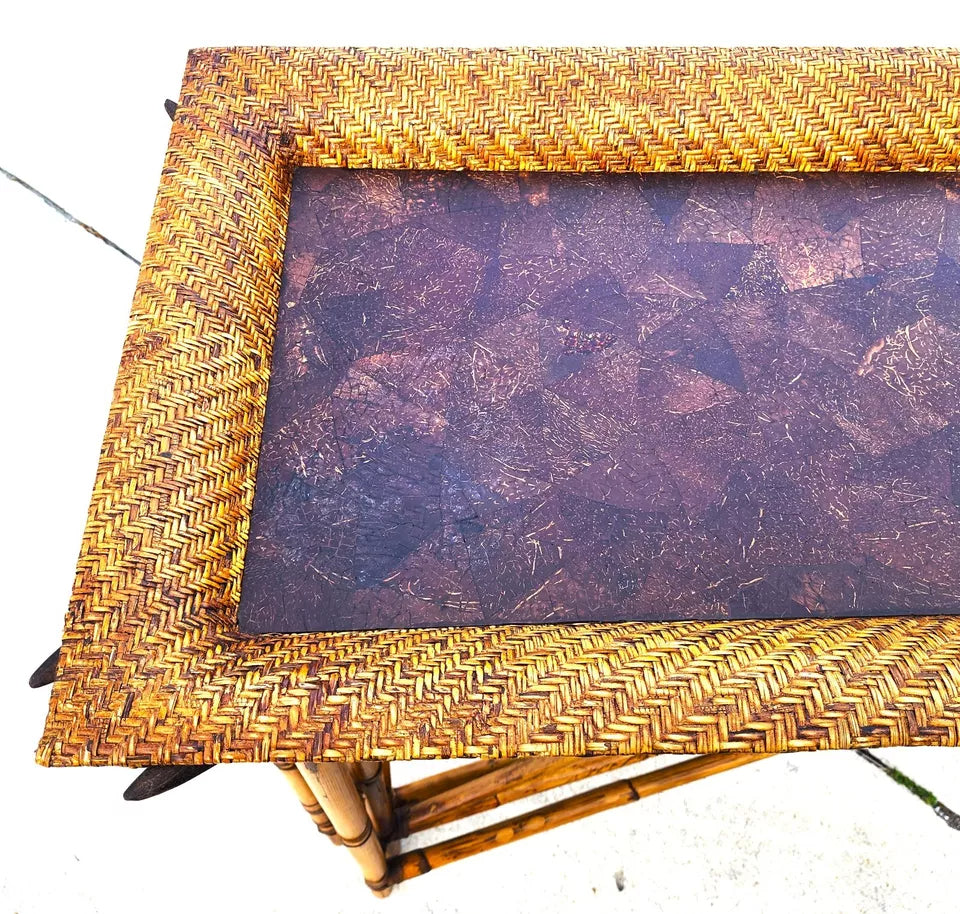 McGuire Style Bamboo Coconut Console Table Huge 6 foot