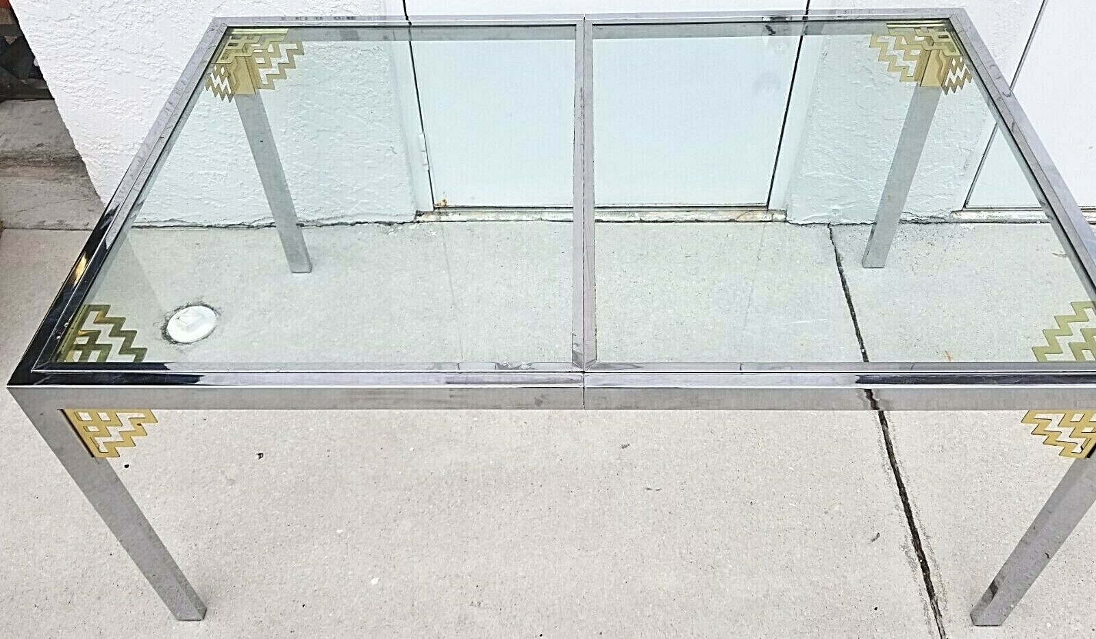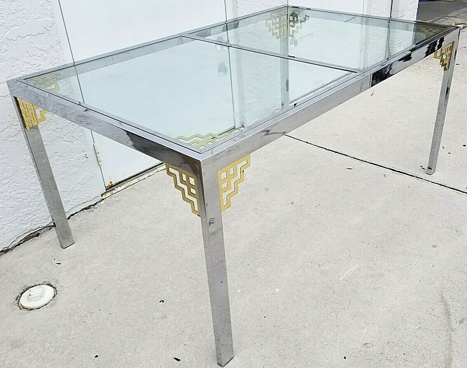 MCM 1970's MASTERCRAFT Style Hollywood Regency Chrome and Glass Dining Table 60"