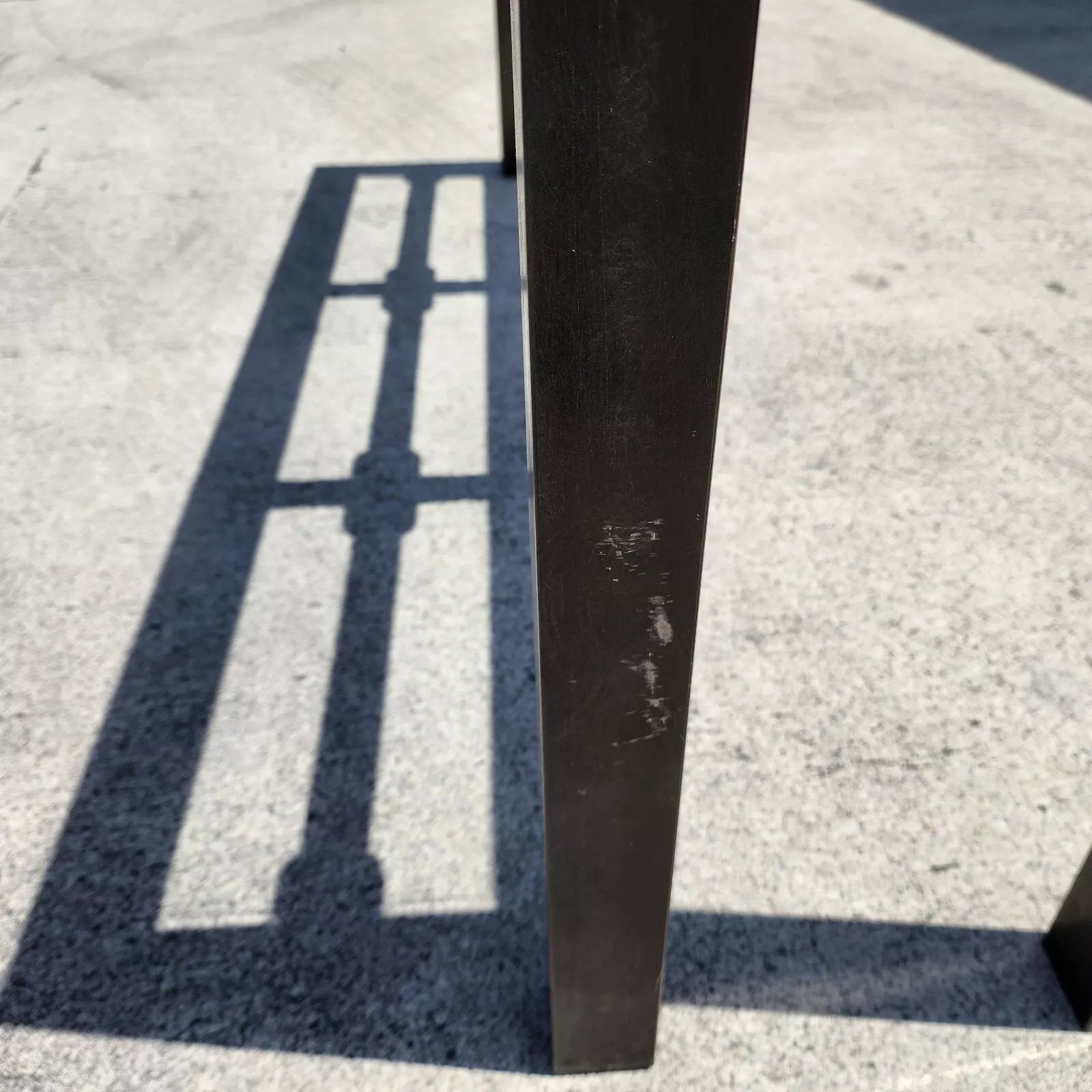 In good, structurally sound and sturdy condition with no damage to glass and some scratches to the patinated finish on some of the legs. The photos and video are an important part of the item description and condition so please use the zoom feature to view them closely.