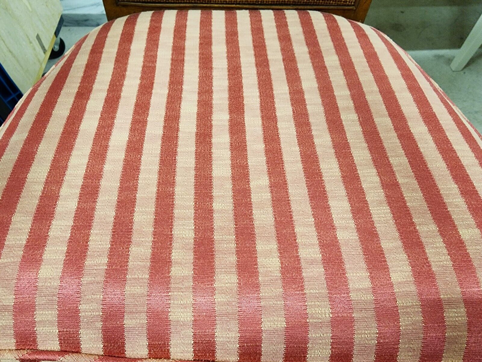 They are upholstered with satin cotton fabric which may look worn or faded in the photos but it is spotless.