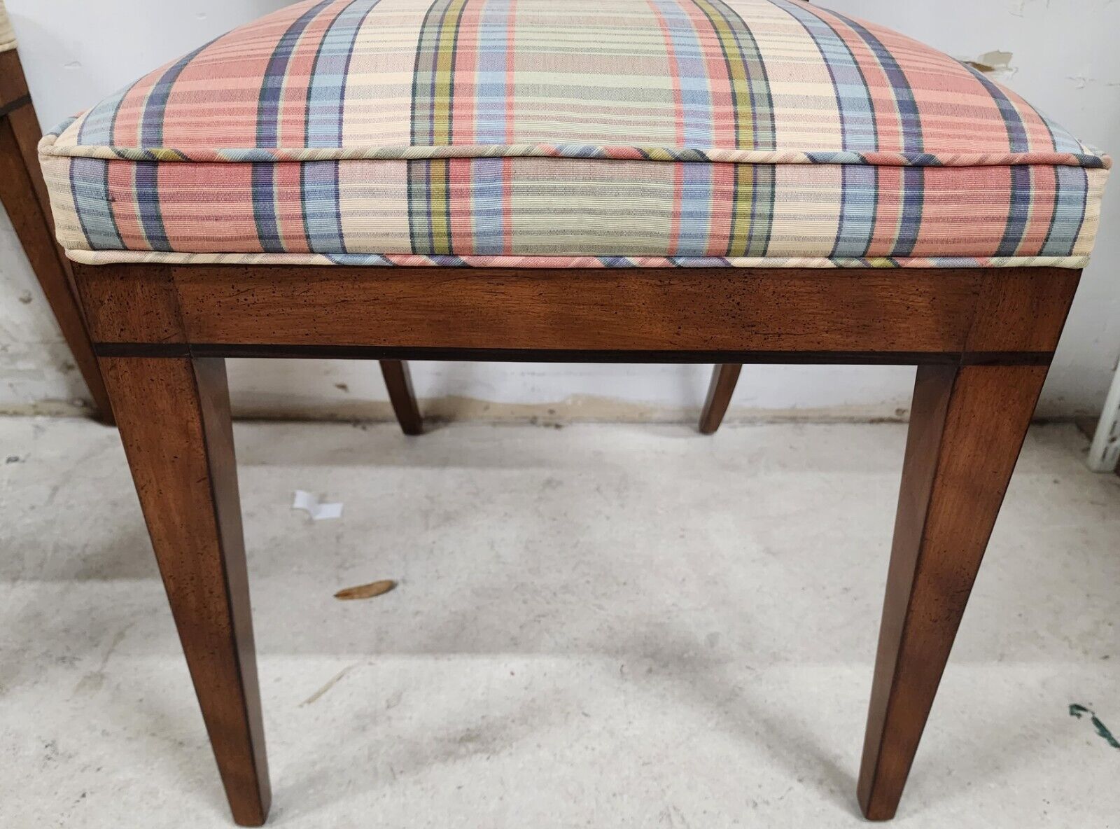 In good, structurally sound and sturdy condition with no notable damage to frames or fabric with the exception od 1 small faint stain on the seat of 1 chair as shown in last photo. The photos and video are an important part of the item description and condition so please use the zoom feature to view them closely.