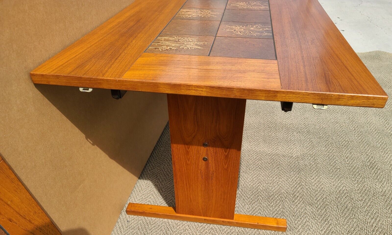 Vintage MCM GANGSO MOBLER Teak & Botanical Tile Drop Leaf Dining Table