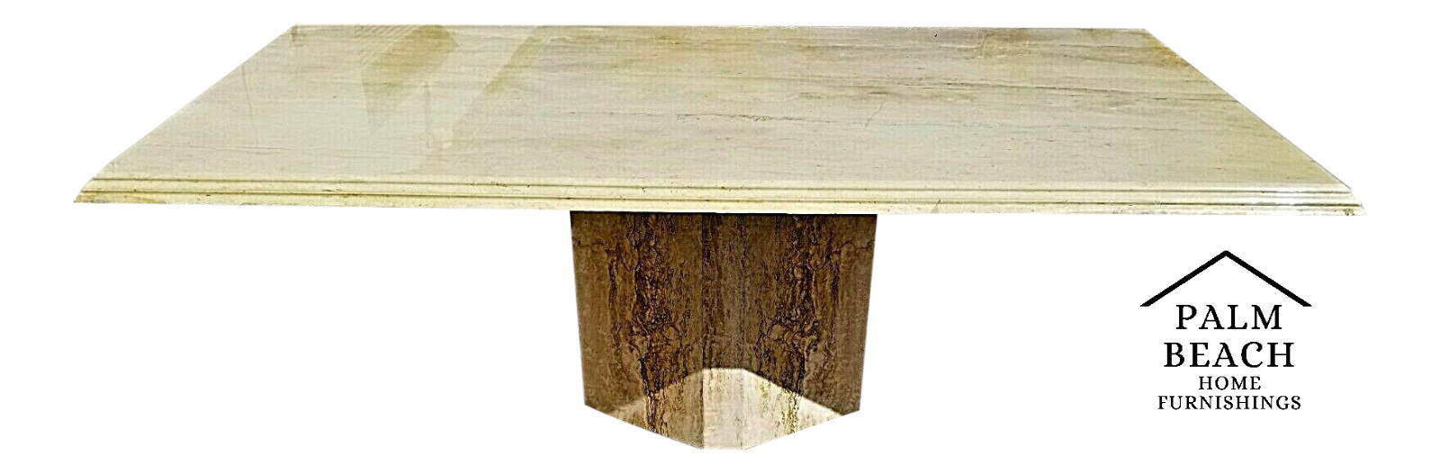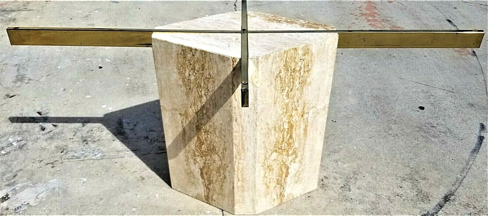 Large Mid Century Modern Vintage Polished Travertine Italian Marble Dining Table