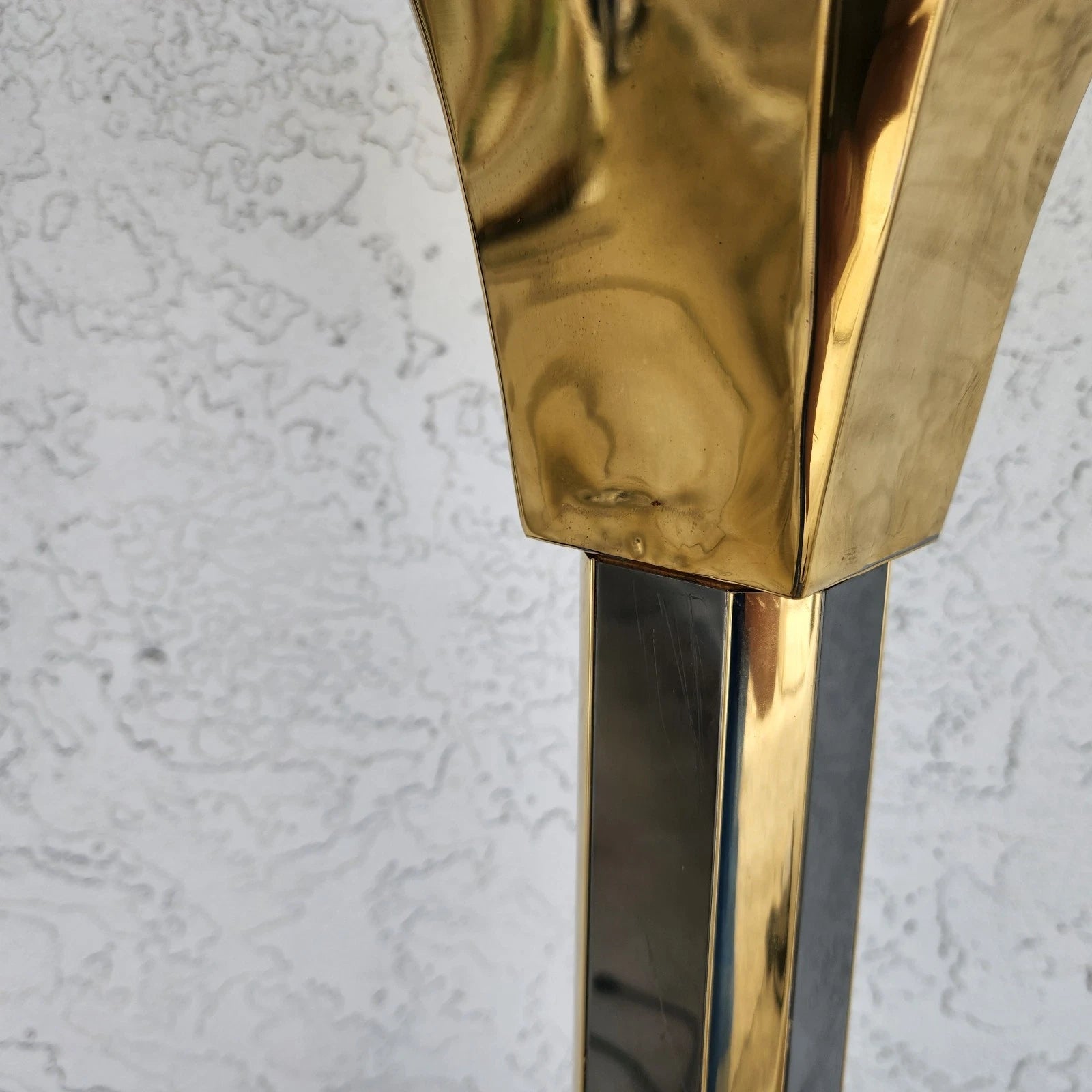 The flat side panels on the stem post are chrome. The corner edges are brass.