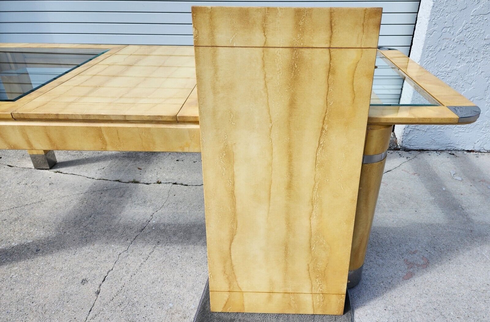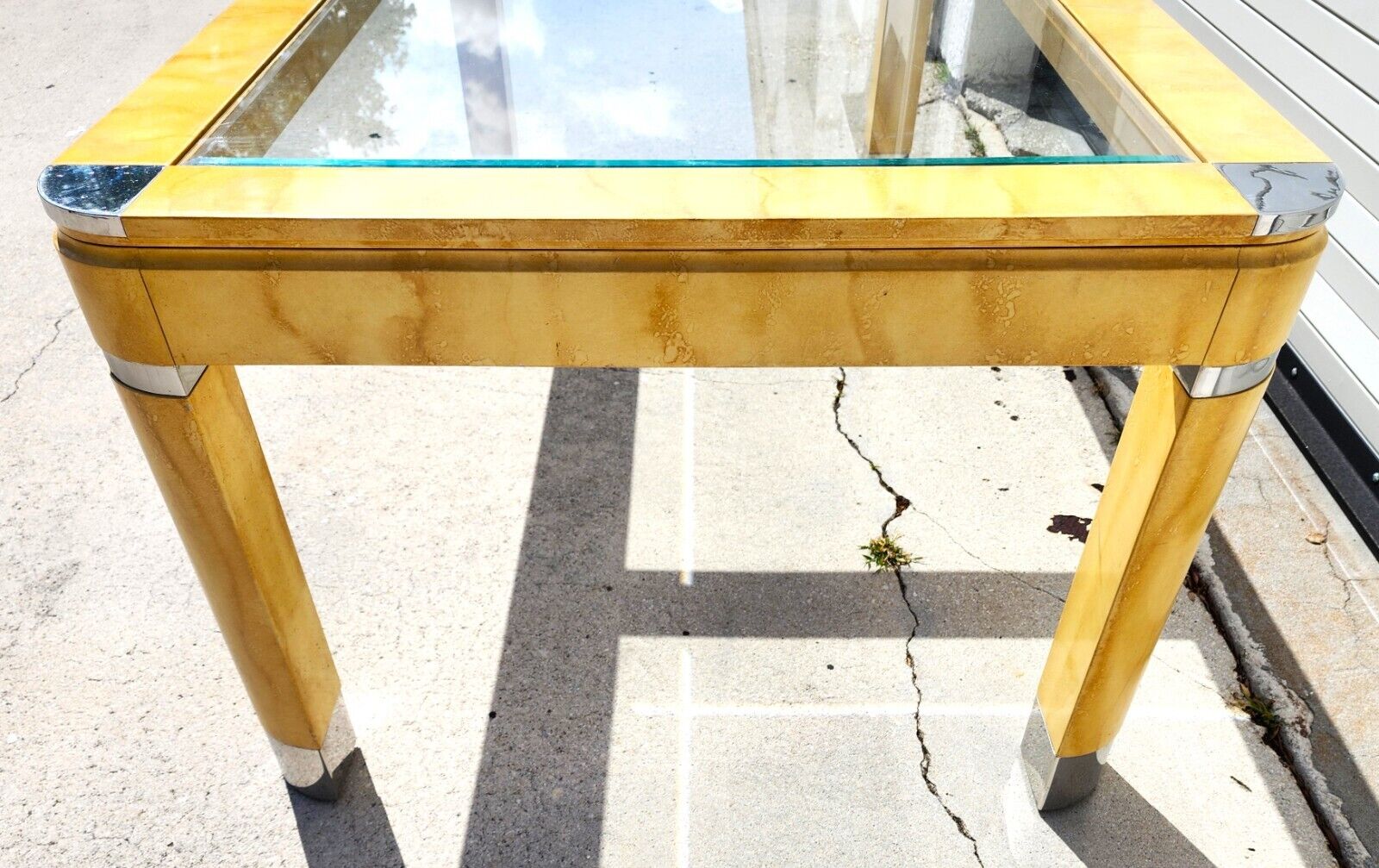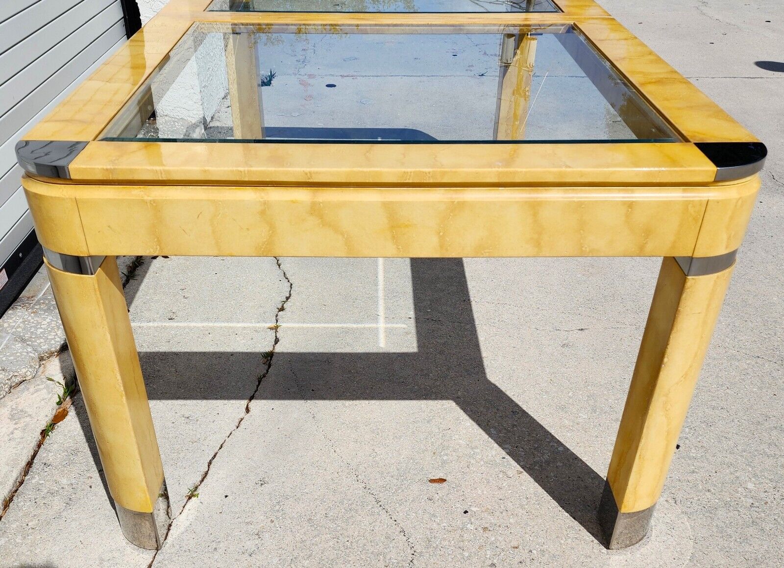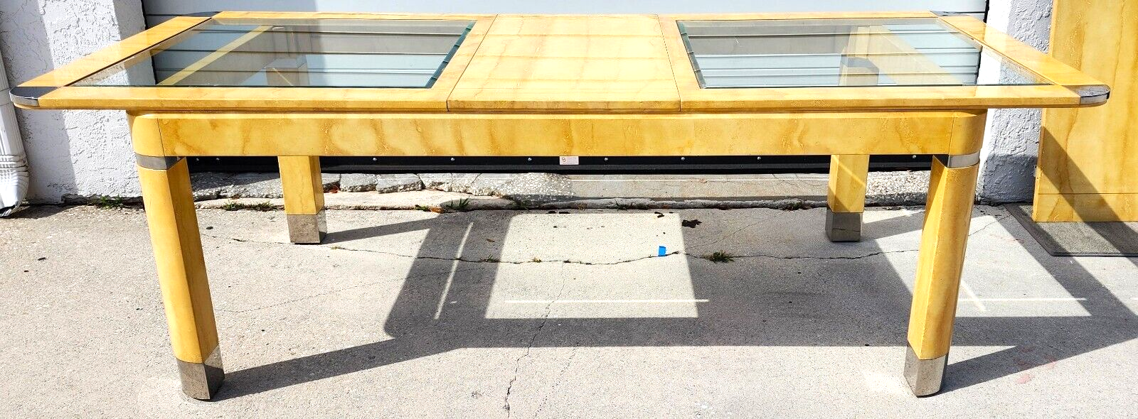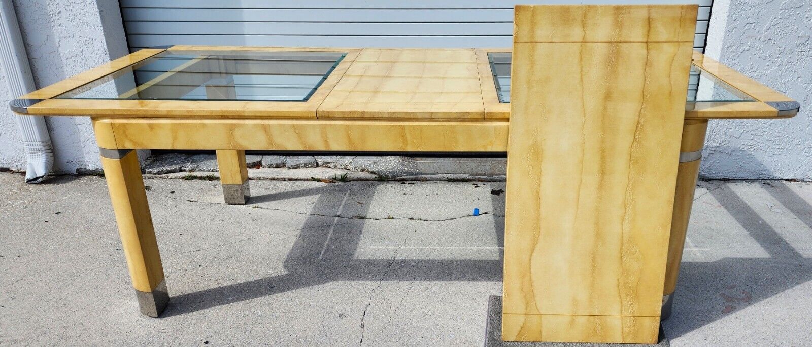 Extendable Faux Goatskin, Chrome & Glass Dining Table in the Karl Springer Style