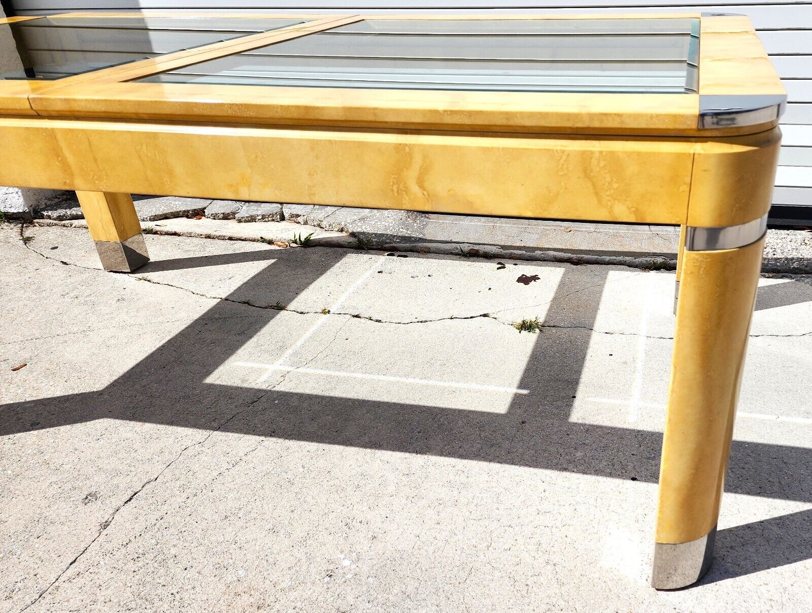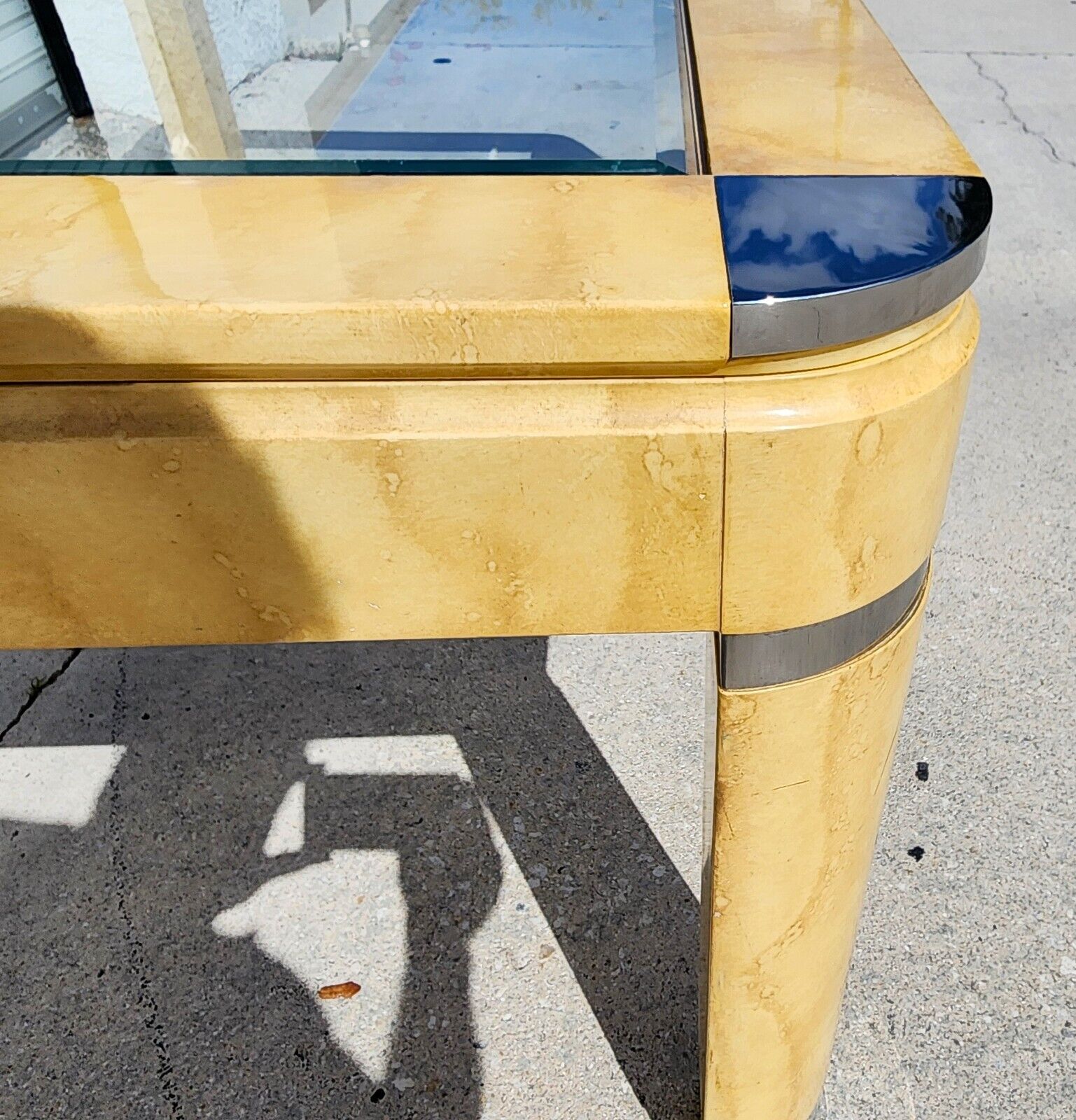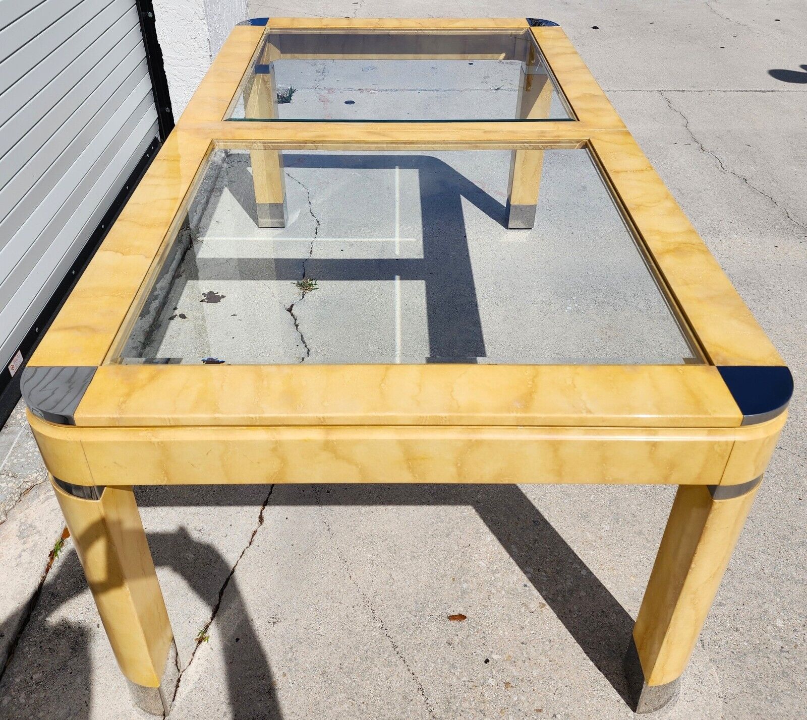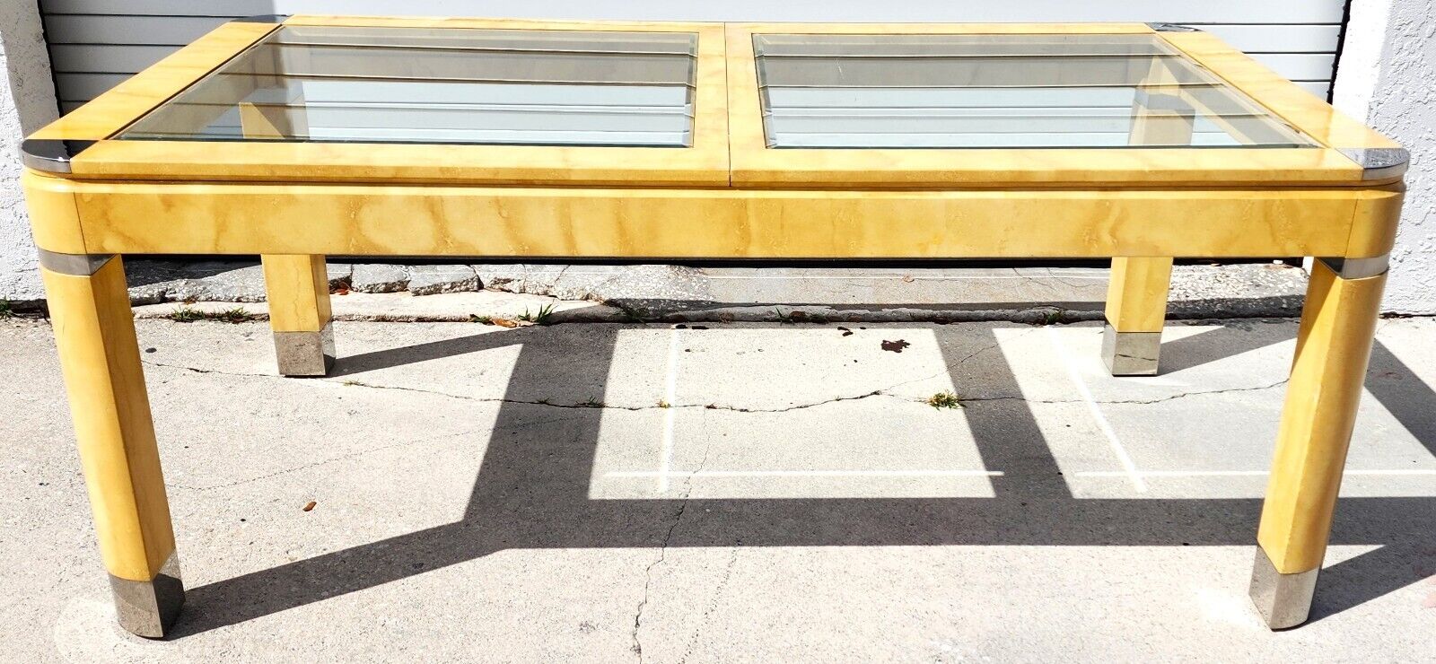 Extendable Faux Goatskin, Chrome & Glass Dining Table in the Karl Springer Style