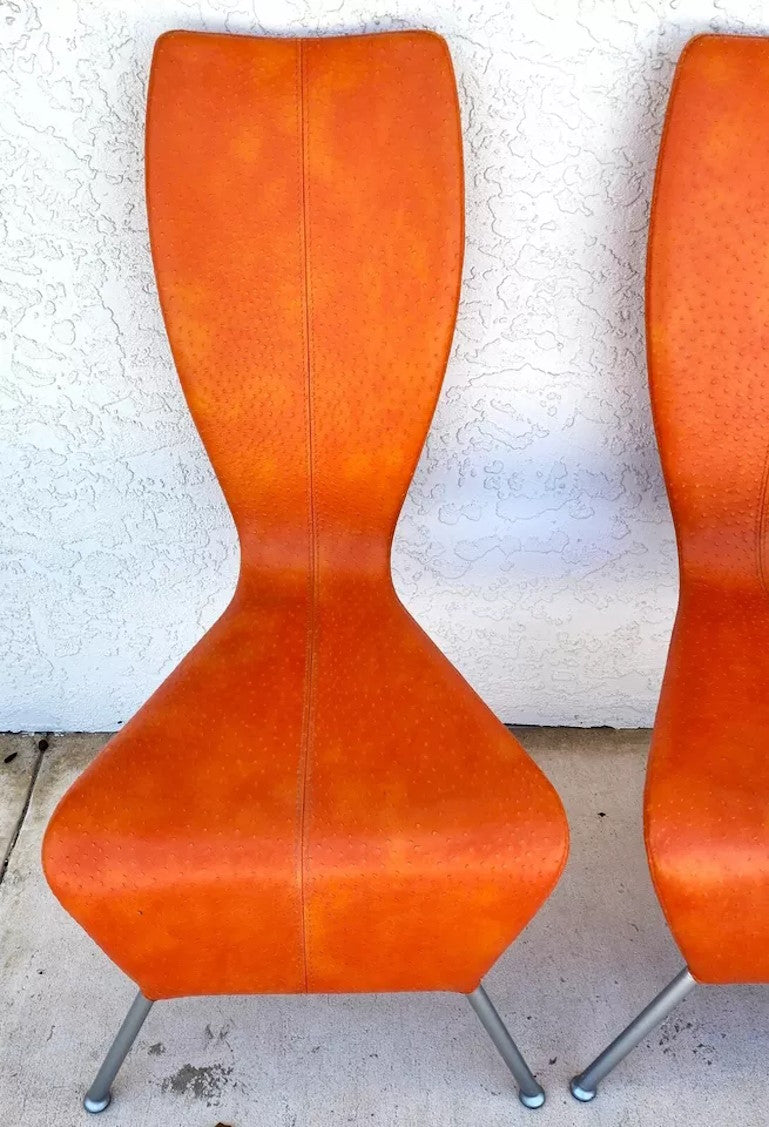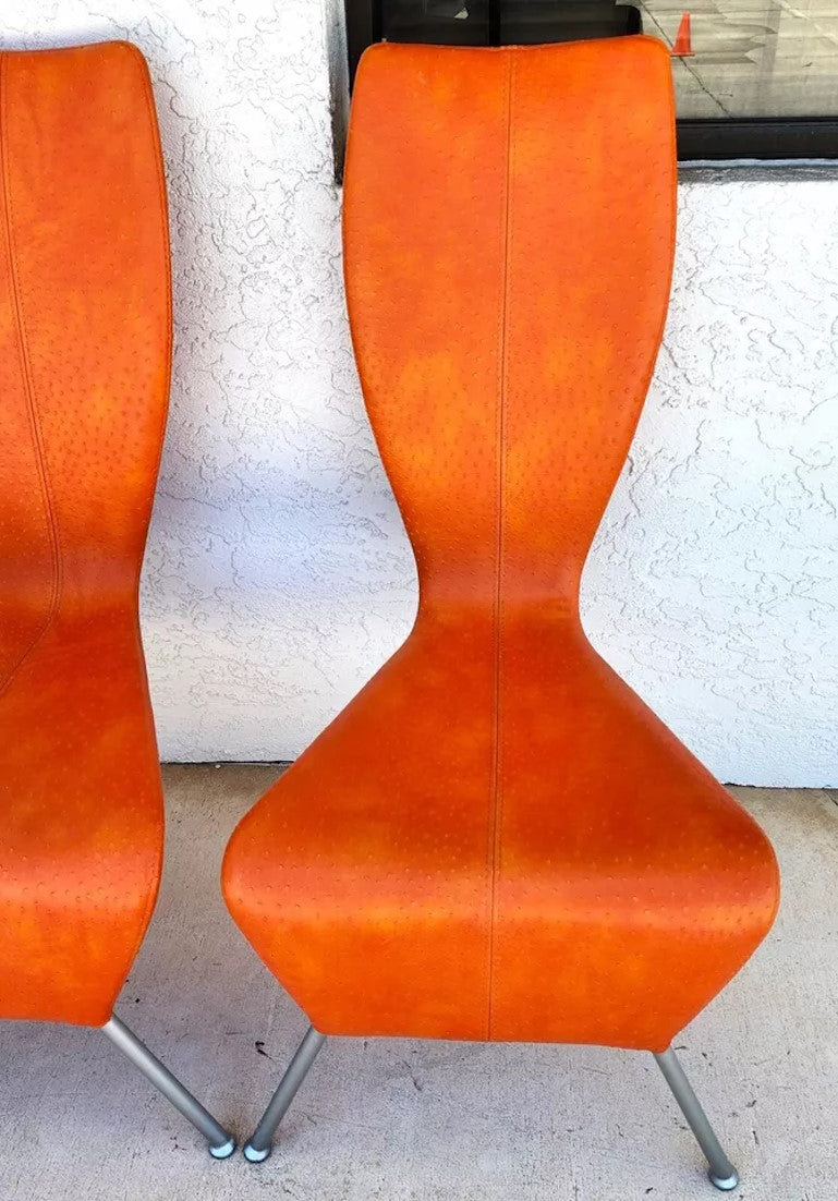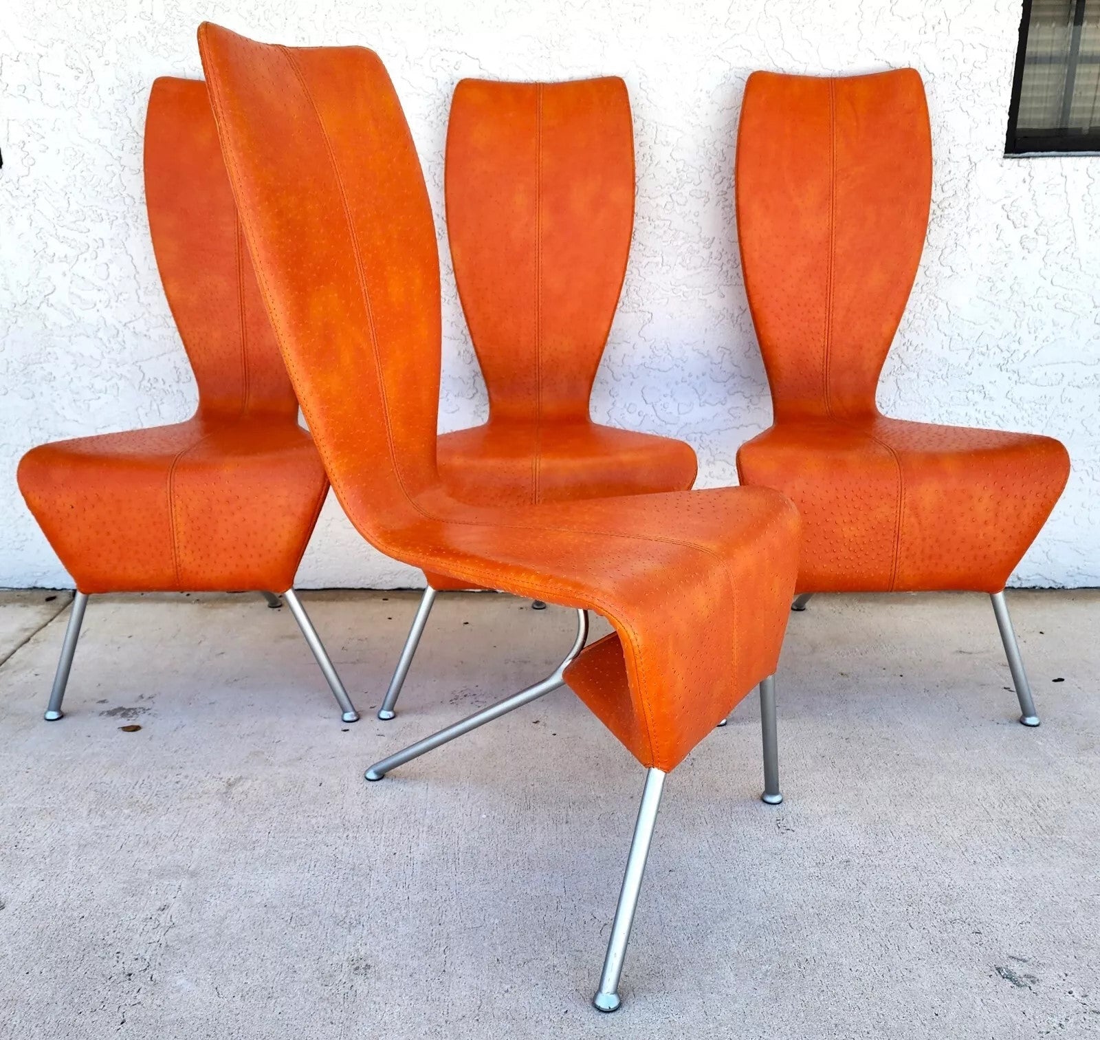MCM Leather Dining Chairs Ostrich Italian French by La Tour Eiffel 1887