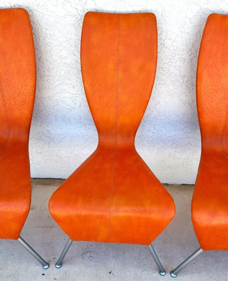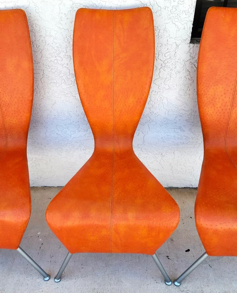 Set of 6 MCM Italian French Style Faux Ostrich Genuine Leather Dining Chairs by La Tour Eiffel 1887