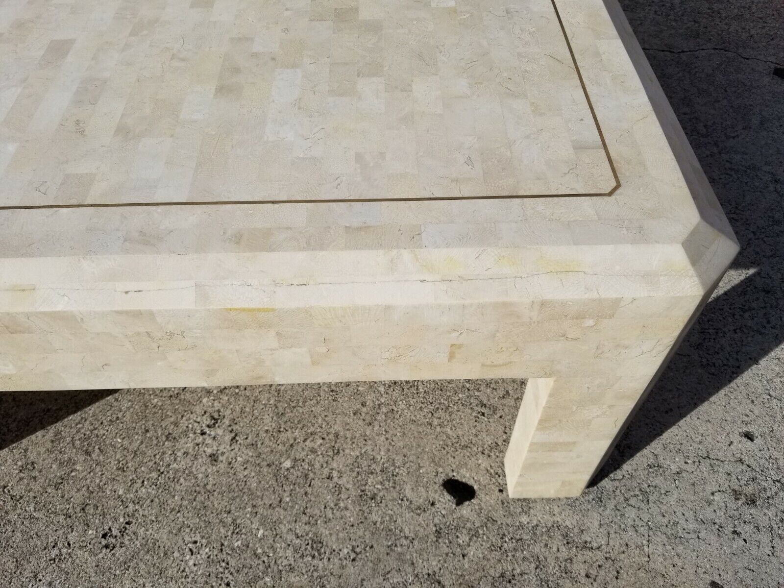 Stunning MCM KARL SPRINGER Era Tessellated Stone with Brass Inlay Coffee Center Cocktail Table by MAITLAND SMITH