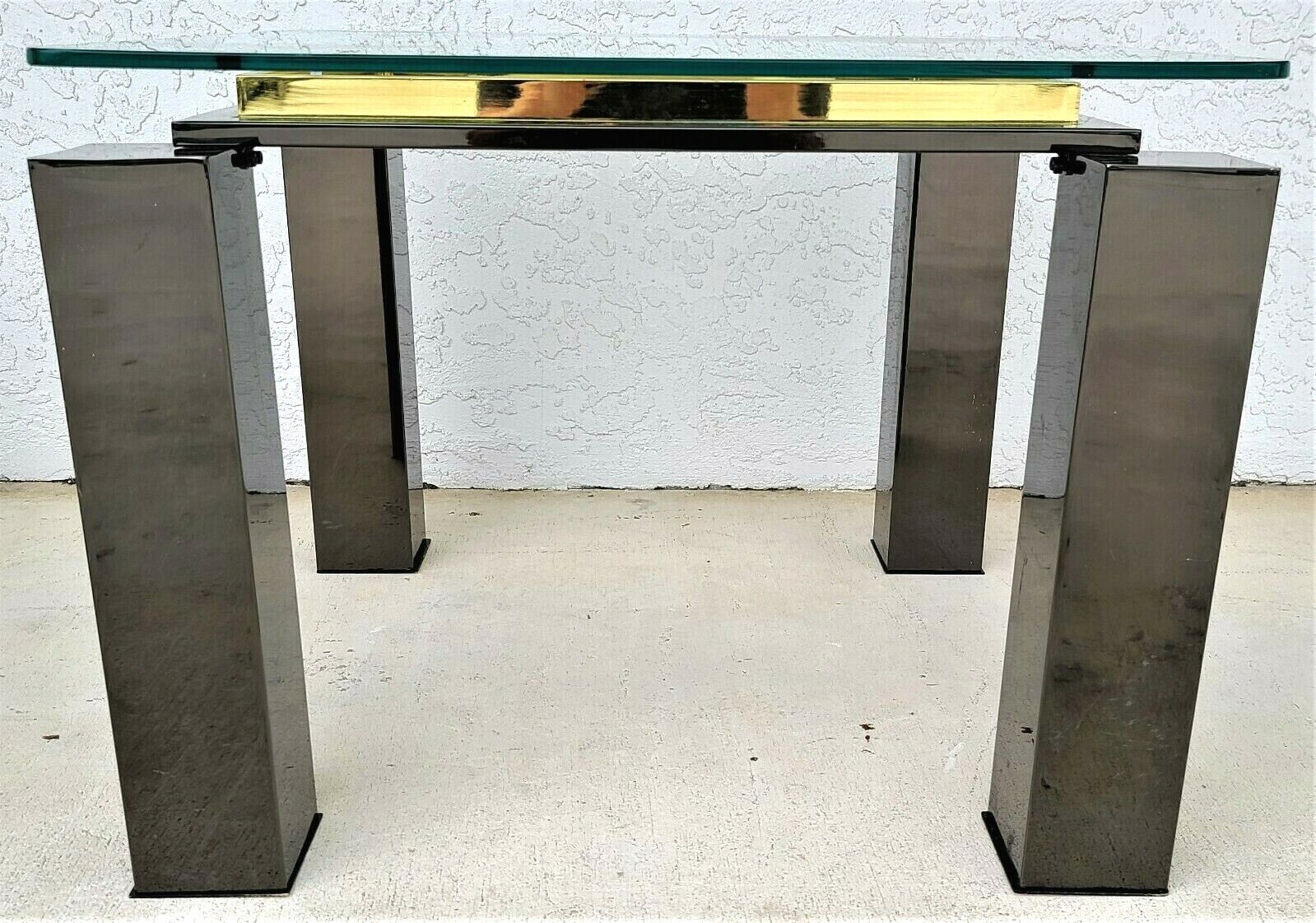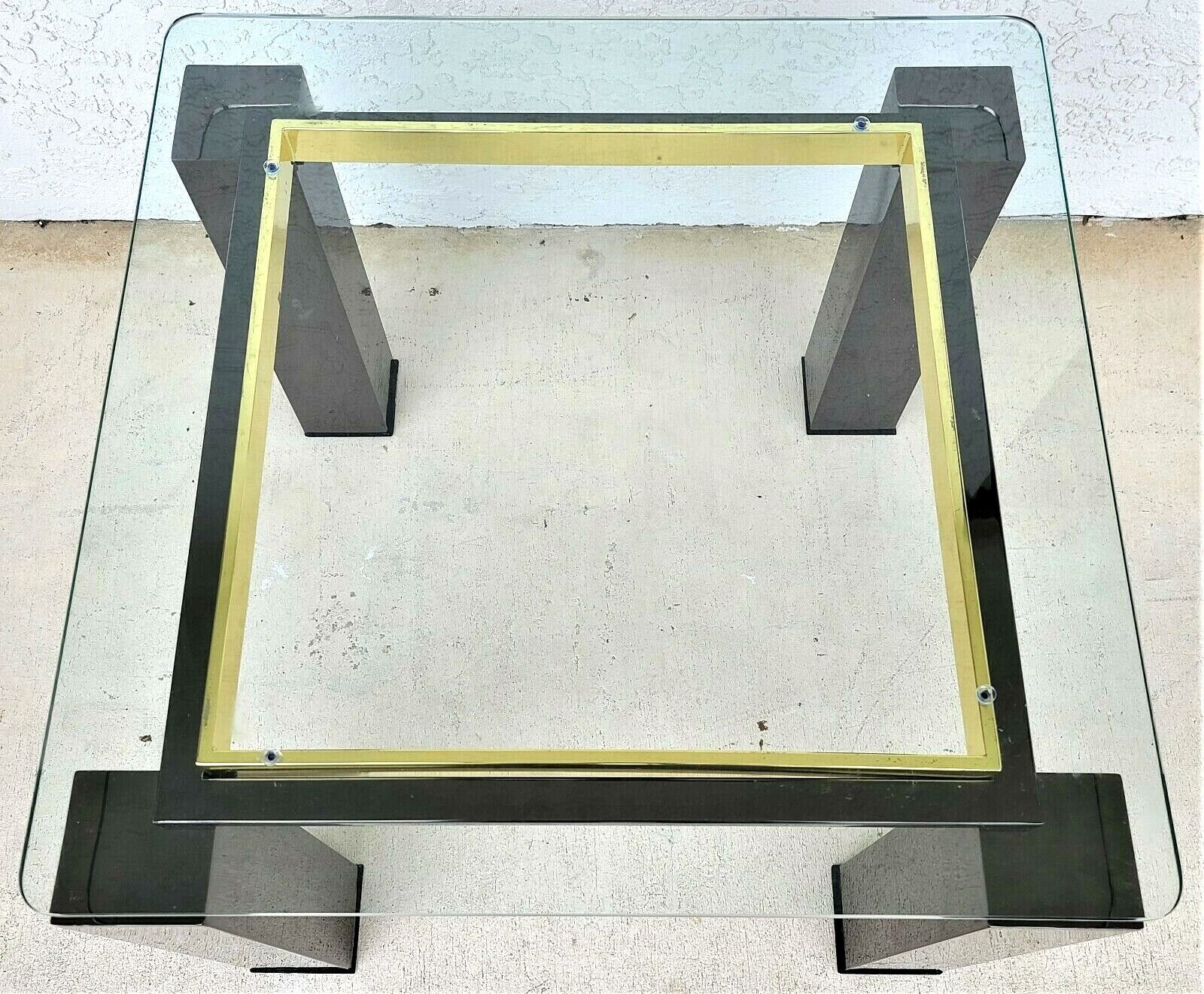 MCM Milo Baughman Style Italian Black Chrome Brass Glass Coffee Side End Table
