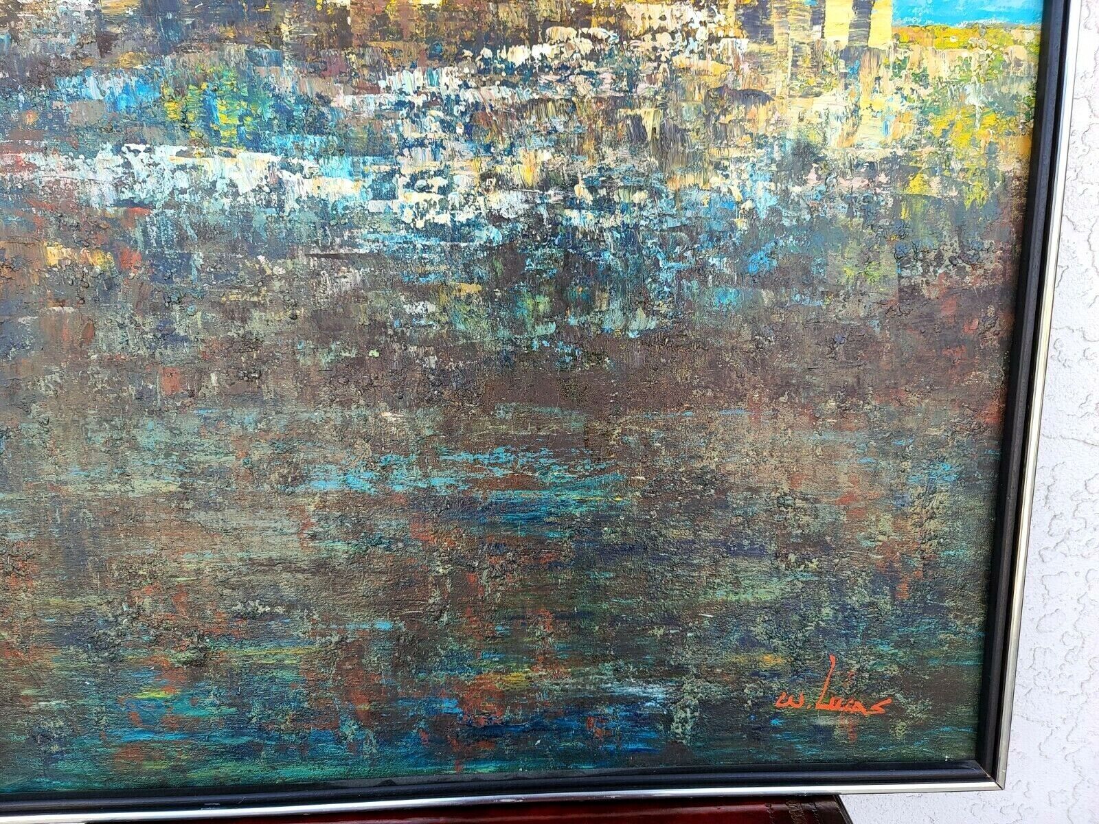Mid Century Modern Original Signed W LUCAS Cityscape Oil Painting